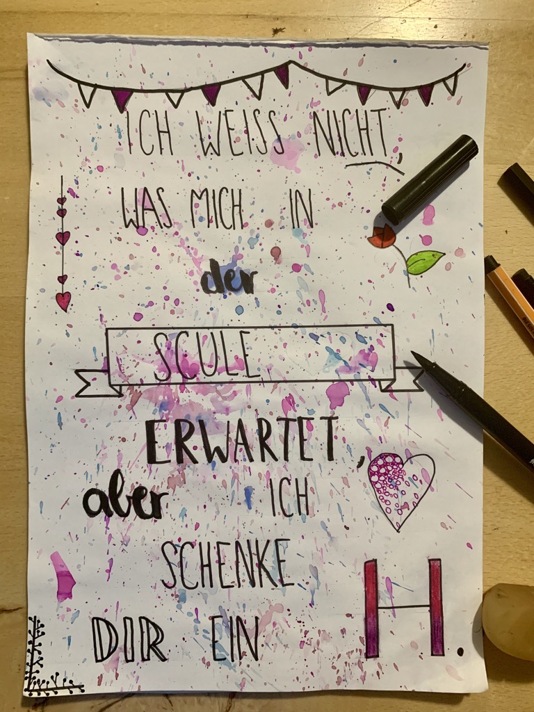 Vor vielen Wochen habe ich mein erstes Handlettering Bild hier auch Steem veröffentlicht und der nette @uwelang fragte mich ob ich nicht einen schönen Text für Ihn, oder vermutlich für eines seiner Kinder, erstellen würde.