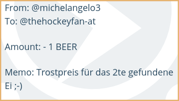 Hey freut mich, hast es gerade gefunden. Gratuliere! 3 Eier, öhm, Steem schicke ich gleich los.