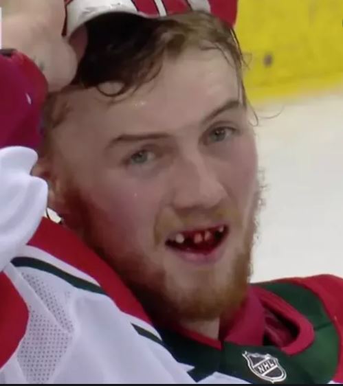 der Puck hat dich genau in die Maske getroffen, hat´s weh getan?