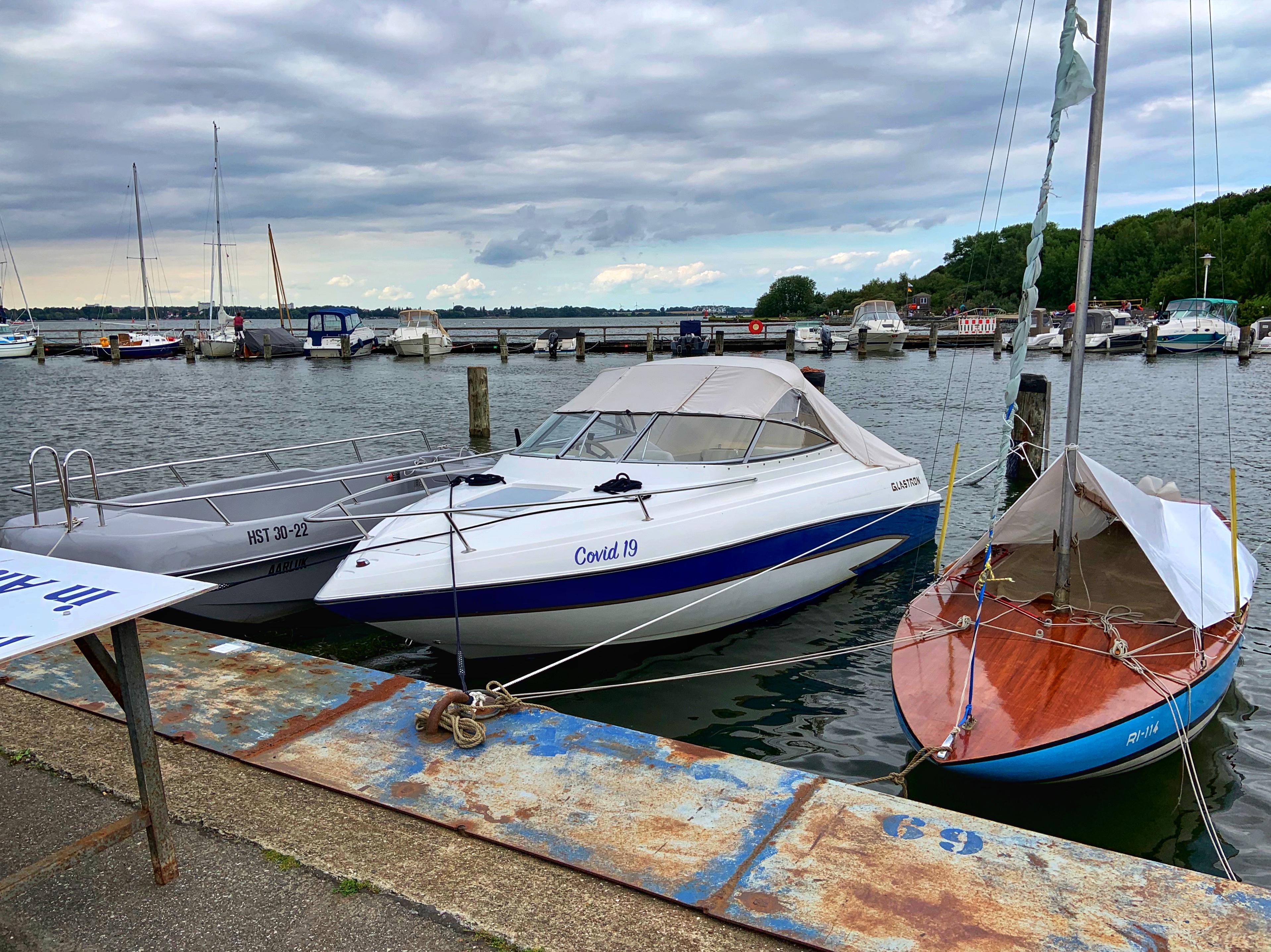 Am Wochenende habe ich eine Radtour von Grimmen aus über die Glewitzer Fähre auf die Insel Rügen unternommen. Auf dem Rückweg habe ich einen kurzen Abstecher nach Altefähr gemacht. In der dortigen Marina habe ich dieses Motorboot fotografiert.