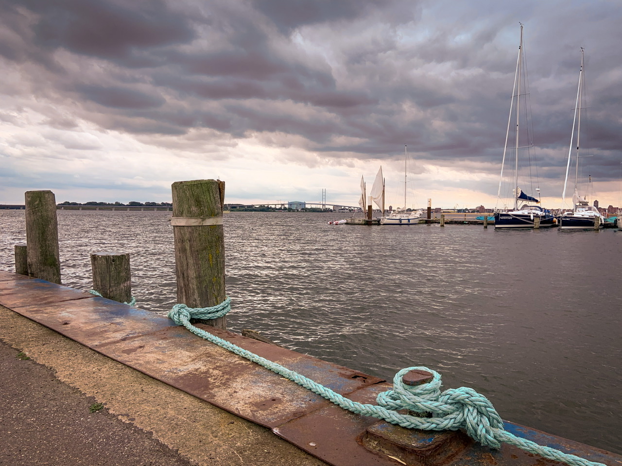 I visited the port of Altefähr a few days ago during my bike tour on the island of Rügen. In the background you can see the Rügenbrücke. On the way back by bike I used the old Rügen dam next to it.