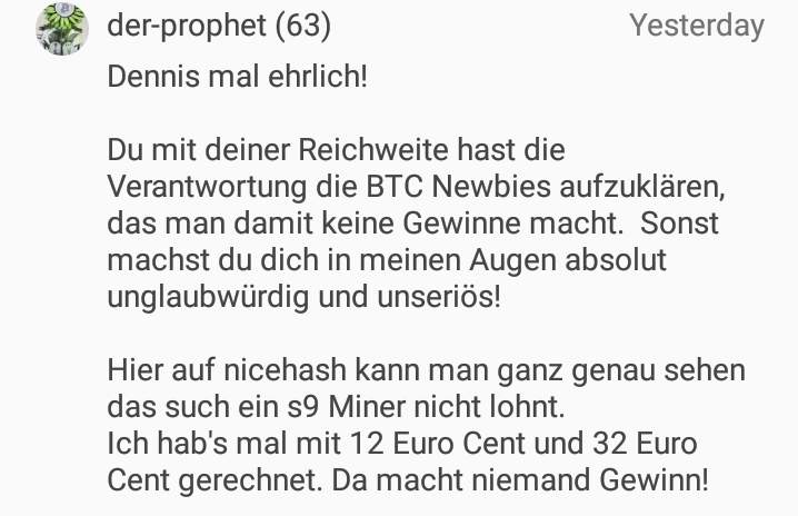 Im Gewinnspiel sagt er das diese zwar kein Cloudmining Service ist aber ein Hostservice. Das heißt man kann dort einen absolut wertlosen S9 Antminer gewinnen der sage und schreibe...