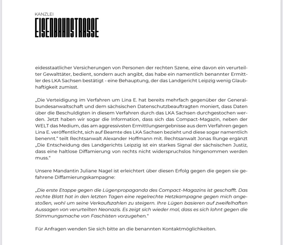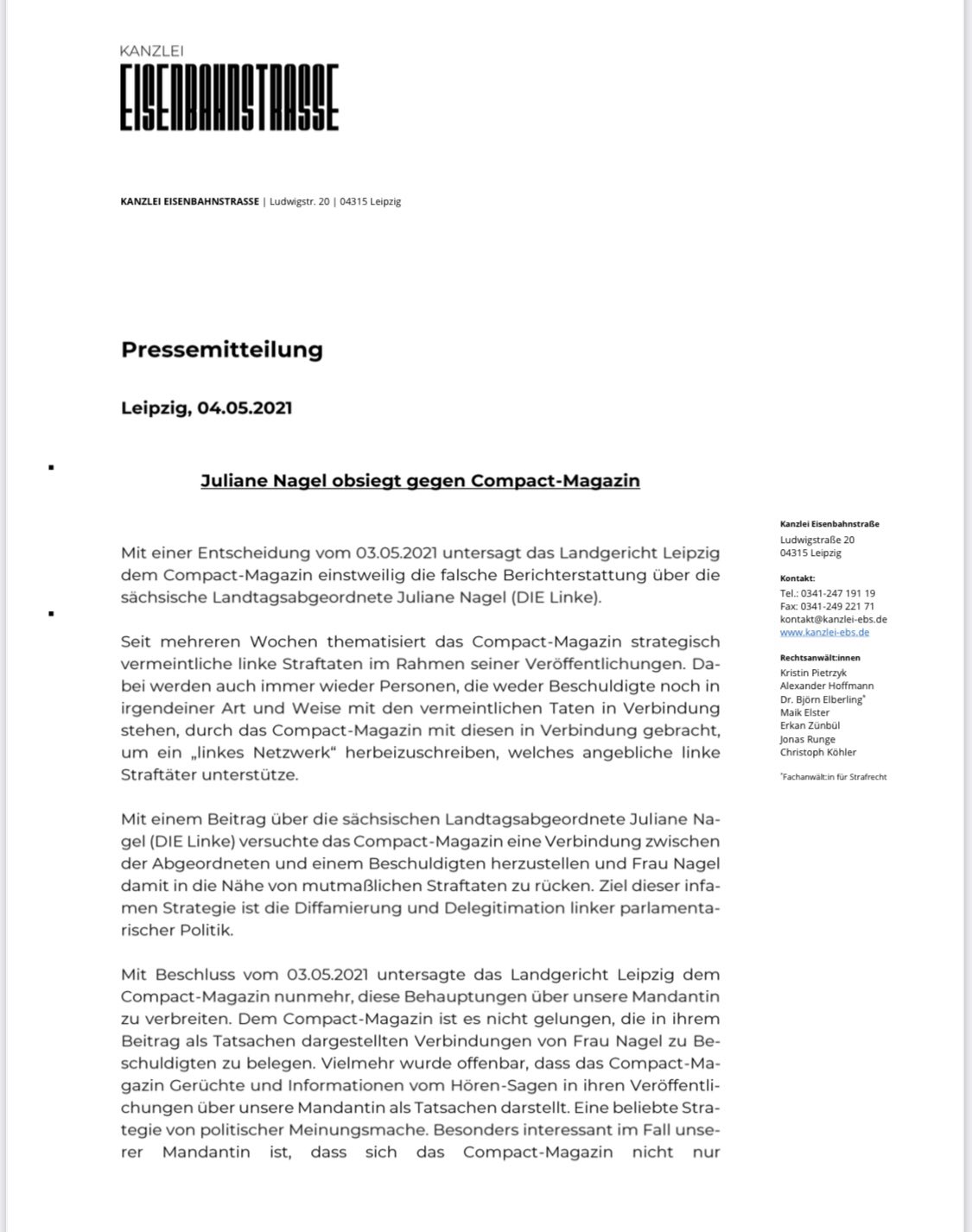 wehrt sich erfolgreich gegen Compact-Magazin und deren Diffamierungskampagne. Dazu ihre gemeinsame PM