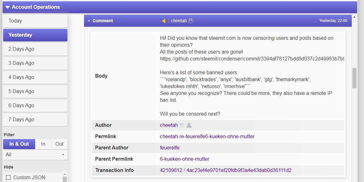 Sicher habt ihr bei cheetah und steemcleaners auch schon mal was positives bewirkt auf steemit, aber das ist schon lange her, und nun lasst ihr euch vor diesen HIVE-Karren spannen ohne drüber nachzudenken wer eigentlich den ersten Fehler gemacht hat, den ersten Stein geworfen hat, schon vergessen das war die alte Zeugengarde und ihre Unterstützer die unbedingt etwas verhindern wollten.