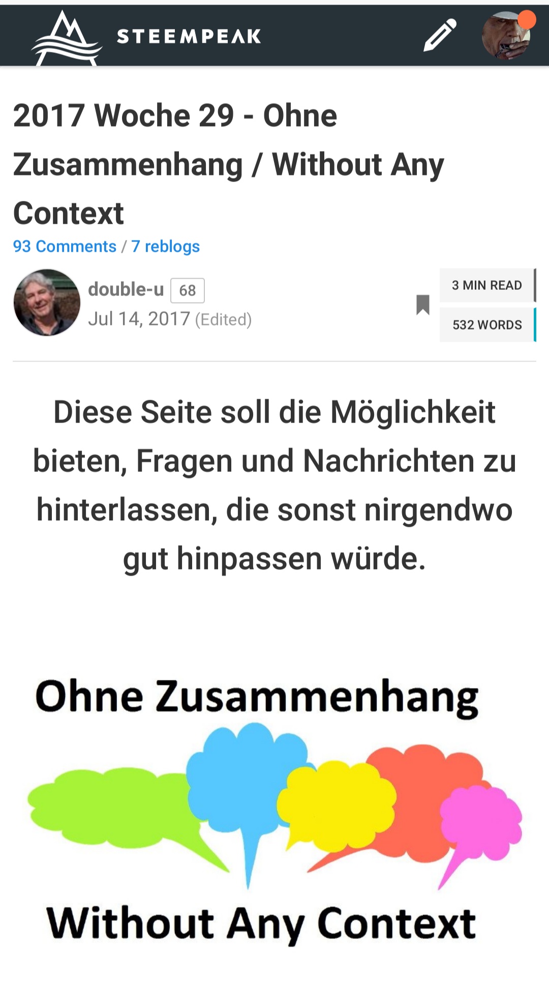 Auch wenn diese Seite mittlerweile sehr den Charakter einer Kneipe angenommen hat, könnt ihr doch sicher sein, dass Fragen, die ihr hier zum praktischen Umgang mit Steemit stellt, beantwortet werden. Es sei denn, es weiß niemand eine Antwort.