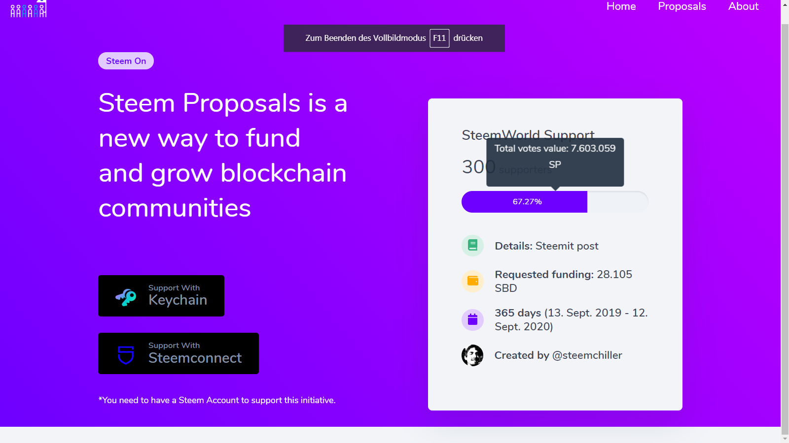 Es wäre echt toll, wenn @steemchiller diese Finanzierung erhalten würde.