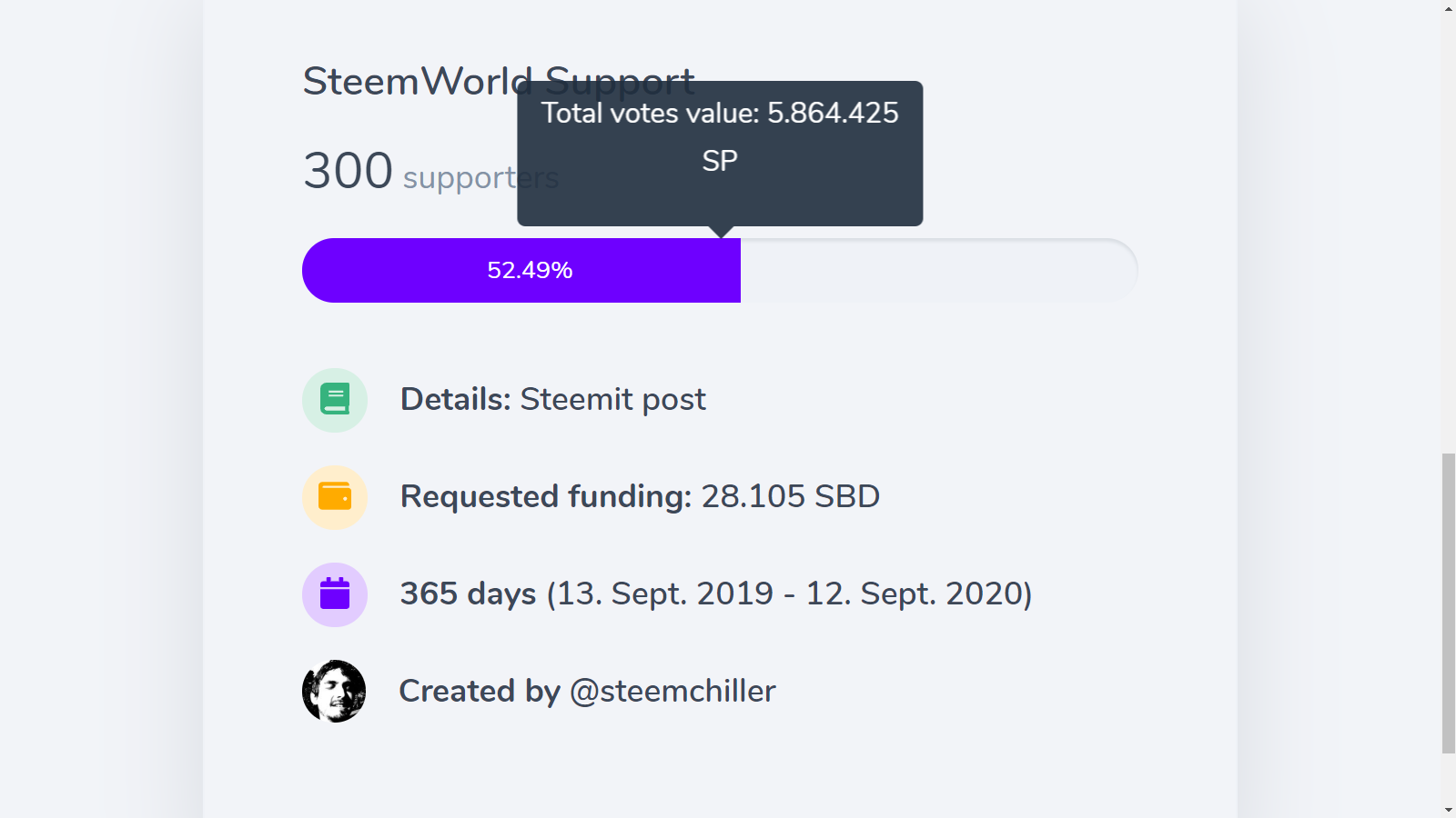 @steemchiller hat einen Post veröffentlicht, mit dem er sein Projekt "SteemWorld" für die SPS-Unterstützung vorgeschlagen hat. Das bedeutet, wenn viele Steemians für ihn abstimmen und voten, kann er eine länger anhaltende Finanzierung für seine Arbeit von dort erhalten.