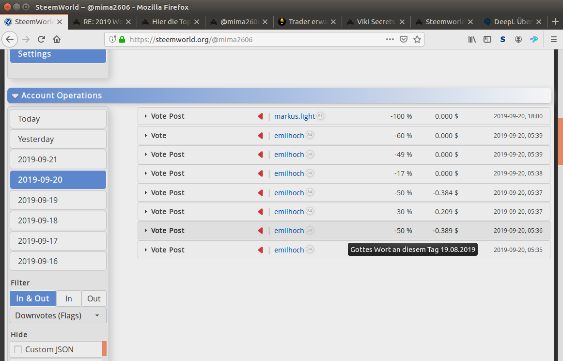Ein hervorragendes Tool von @steemchiller. Hier siehst du ganz viele Details, die du auf Steemit direkt nicht sehen kannst. Ohne die Nutzung der SteemWorld kann ich mir ein Agieren auf Steemit gar nicht mehr vorstellen.