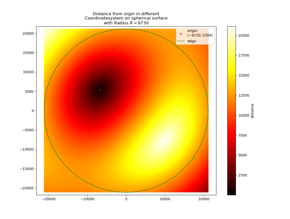 Ich hab gestern mal ausgerechnet wie sich Entfernungen auf der Erde berechnen würden und dazu dieses Python-Skript geschrieben. Man sieht am Bild sehr gut, dass Orte mit dem selben Abstand keine Kreise mehr sind. Wäre die Erde flach müsste also entweder der Raum krumm sein, oder der Globus könnte nicht maßstabsgetreu sein.