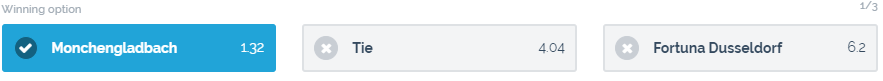 Mit dem 5. und letzten Tipp für heute habe ich mein Restguthaben auf Gladbach gesetzt. Bei Düsseldorf läuft im Moment gar nichts. Da sehe ich bei einem Auswärtsspiel in Gladbach nur wenig Hoffnung irgendetwas zählbares mit nach Hause zu nehmen. Deshalb geht mein Tipp trotz der niedrigen Quote von 1.32 klar auf Gladbach.