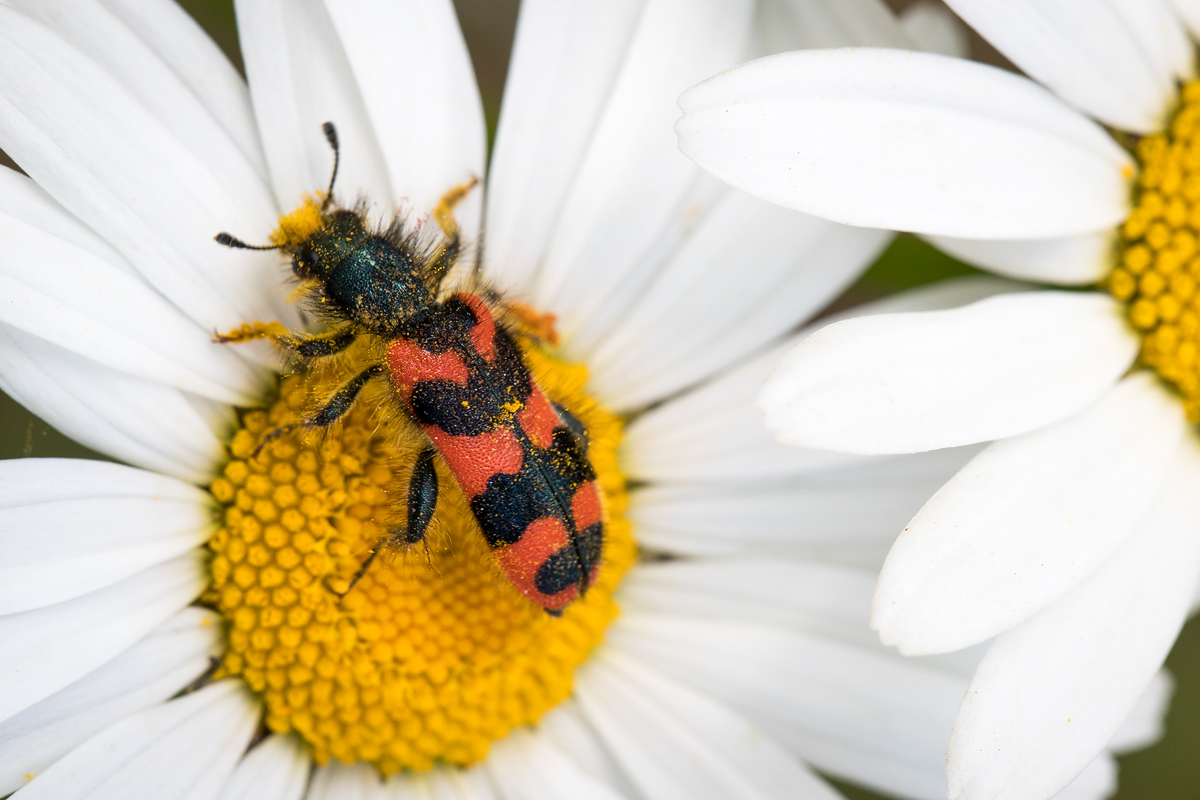 Mit ihrem intensiven Farben bilden die Käfer einen tollen Kontrast zu Blüte. Das ist natürlich ein Hingucker. Genau aus diesem Grund habe ich das Bild auch als erstes platziert.