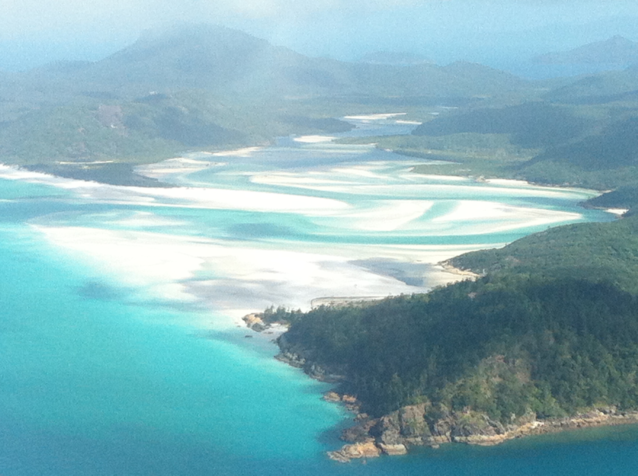 Unsere Zelte standen auf einer von Sand bedeckten, kleinen Lichtung im Wald, die von großen, schattigen Bäumen und Büschen umrundet war, durch die sich hier und da die Sonne ihren Weg zu uns bahnte und uns mit ihren warmen, wohligen Strahlen wärmte. Die kleine Lichtung, oder auch Bucht mündete in einen schmalen, sandigen, von kleinen Stöckchen und Blättern bedeckten Pfad, der nach etwa 15 Metern einen weißen Sandstrand erreichte. Mit dem Kaffee in der Hand folgte ich dem kleinen Pfad und fand mich an diesem unendlich lange wirkenden Sandstrand, dessen Sand so weiß war, dass er aussah wie Schnee, wieder. Das Meer war nur ein paar Meter von mir entfernt, also schlenderte ich darauf zu und folgte dem Geräusch der kleinen Wellen, die den Sand mit klarem Meereswasser bedeckten. Als meine Zehenspitzen das Wasser berührten fühlte ich mich so lebendig, so frei und so glücklich, wie ich es in Deutschland lange nicht gewesen war. Hier stand ich also, mit dem Wind in den Haaren, der Sonne im Gesicht und einem Lächeln auf den Lippen, am schönsten Strand den ich in meinem Leben gesehen hatte – Whitehaven Beach.