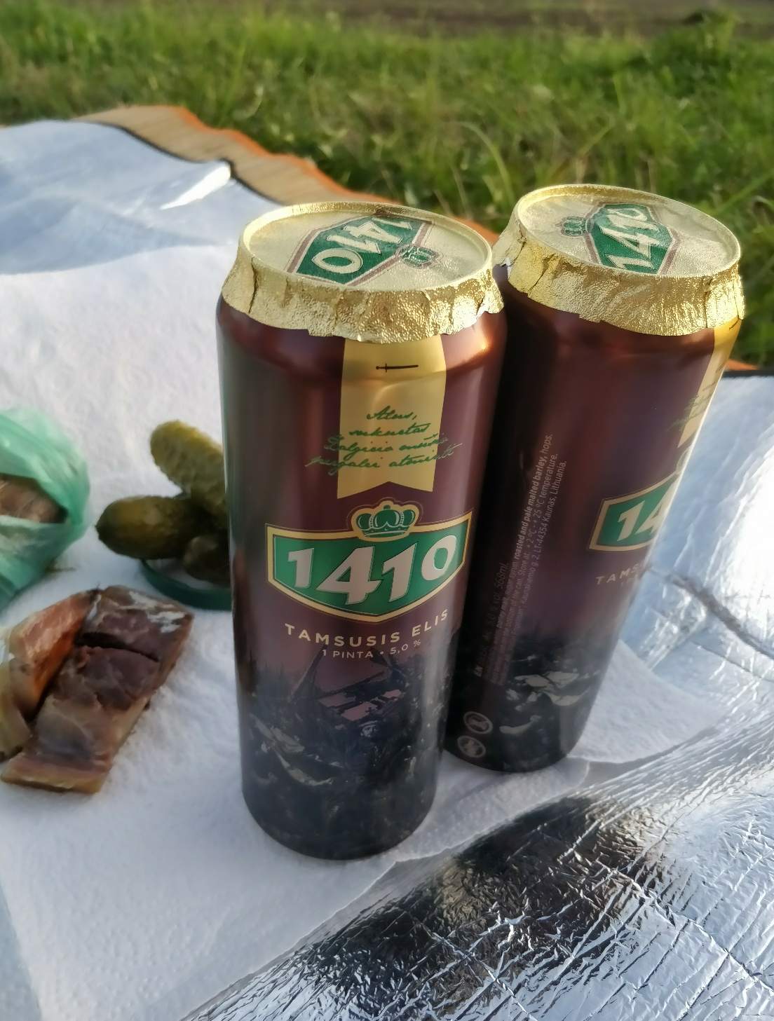 Es gab den Rest eines auf einem Markt gekauften geräucherten Fisch, Brot, den Rest der Salami mit Käse sowie Gurken aus dem Glas. Als Gleitmittel gab es eine Büchse des nachfolgend abgebildeten dunklen Biers, welches gut schmeckte.