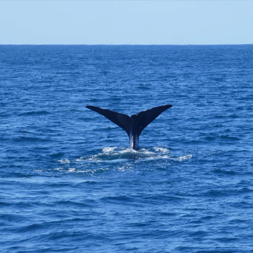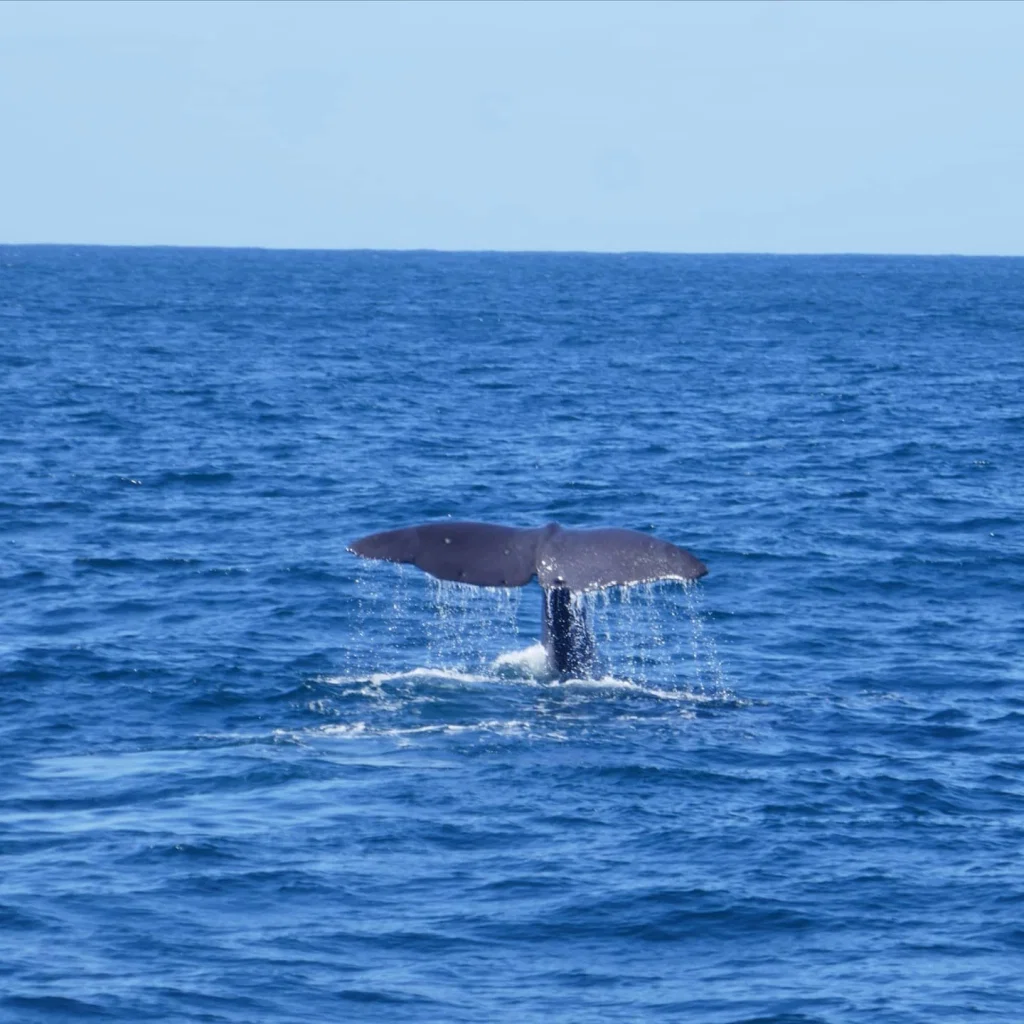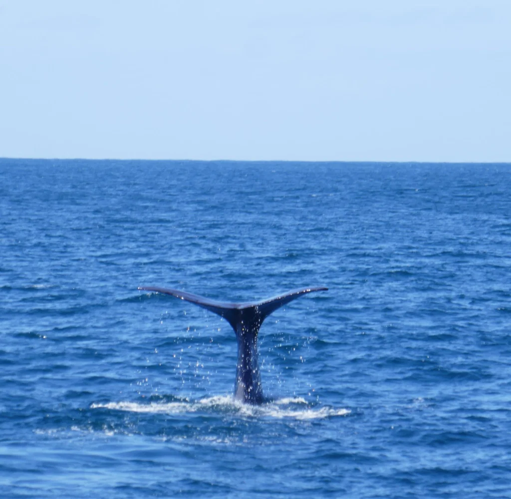 Wir fuhren ca. 45 Minuten raus aufs Meer und kaum angekommen haben wir auch schon den ersten Wal gespottet. Und danach gleich noch einen zweiten. Beide blieben mehrere Minuten an der Oberfläche bevor sie dann abtauchten und schön ihre Flosse zeigten.