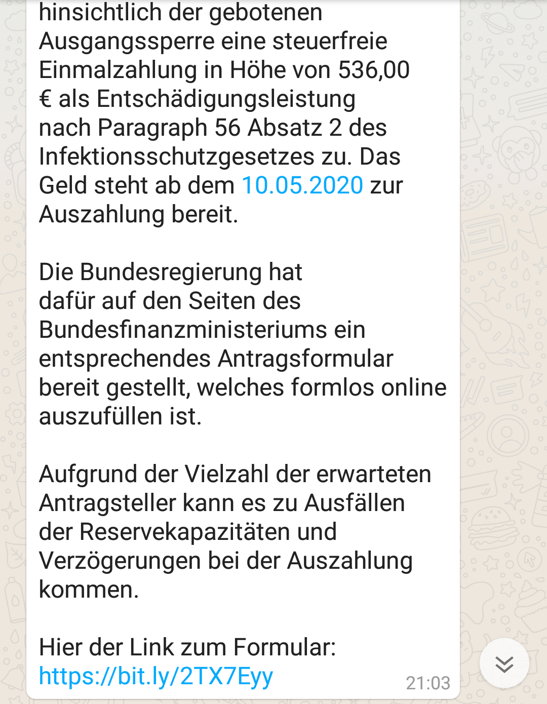 Ich will nicht alle bit.ly Links verteufeln, würde allerdings dringend zur Vorsicht raten. Aber das gilt eigentlich für alle mysteriösen Links. Gerade im Zusammenhang mit Corona ist hier wohl momentan viel Blödsinn im Umlauf.