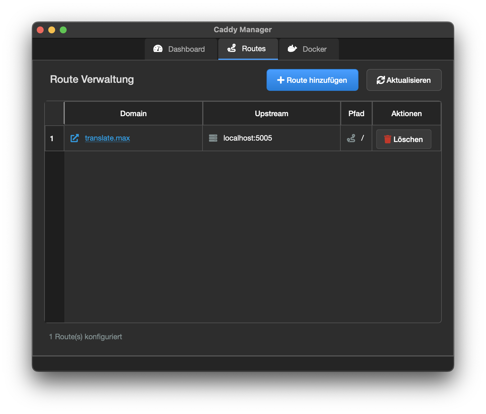 - Route-Verwaltung: Reverse Proxy Routen visuell hinzufügen und verwalten