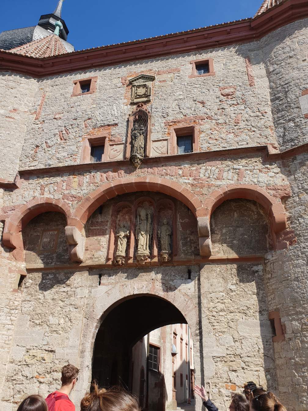 Hier seht ihr den "Eingang" zum Haupthof der Burg, früher wurde hier das Tor heruntergelassen wenn die Feinde schon die außeren Ringe erobert hatten. Und aus den Schießscharten & Fenstern wurde dann Pfeile oder heißea Blei gegossen.