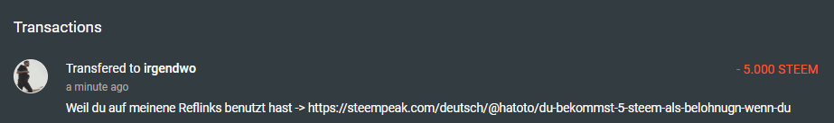 Aber weil ich Dir dankbar bin, weil Du schon vor dem Angebot auf meine Links geklickt hast und ich durch dich EOS und XLM bekam, bekommst du trotzdem die 5 STEEM 😊!