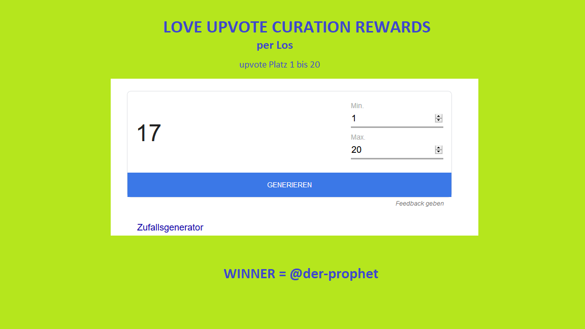 Als Dank für die Unterstützung durch hohe Upvotes und hohe Voting Power Eures Accounts könnt ihr ggf zu den fünfzehn höchsten Upvotern gehören, welche dafür entsprechend real am Ende der Votingfrist von 7 Tagen dafür die Chance haben LOVE Anteile geschenkt zu bekommen, mit denen die Halter des LOVE Tokens ihre eigenen Curation Rewards für erteilte upvotes deutlich erhöhen können.