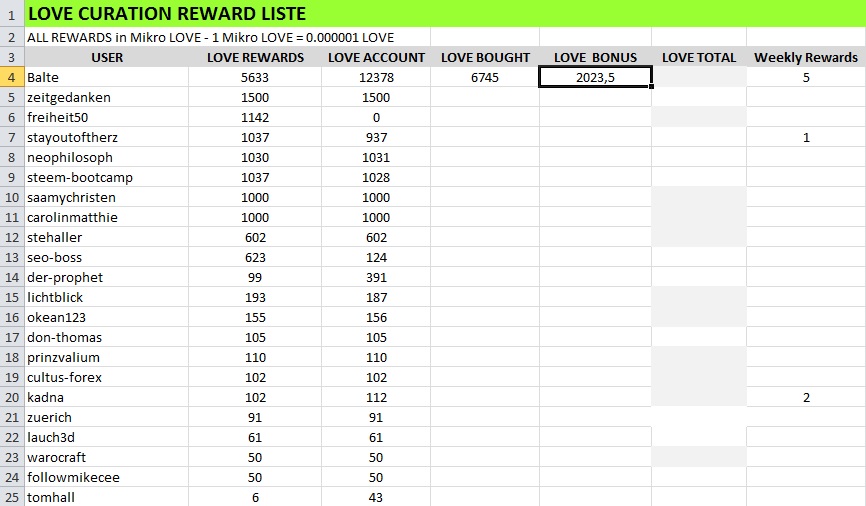 LOVE - UPVOTE CURATION REWARDS DER LETZTEN WOCHE