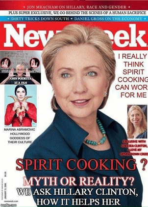 Stellen wir uns einmal vor, Donald Trump würde ein Bild oder einen Film aus dem Hut zaubern, der zum Beispiel Hillary Clinton beim Verspeisen eines Artgenossen zeigt. Zubereitet nach einem Spirit-Cooking-Rezept ihrer Busenfreundin Marina Abramovic.