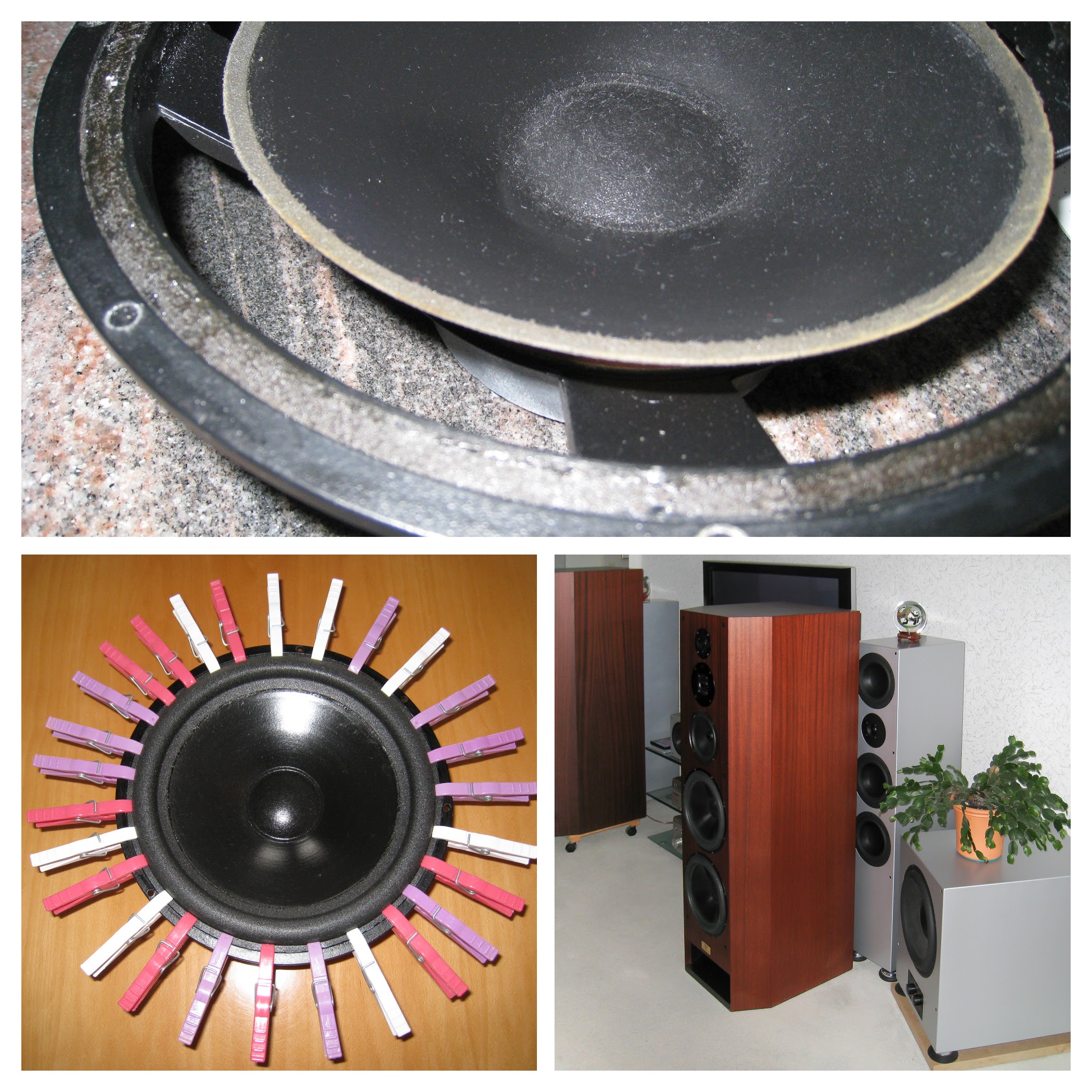 So ein Projekt habe ich auch schon mal in Angriff genommen und meine früheren Lautsprecher restauriert. Die T&A TMR 160 waren eine Legende unter Hifi Freaks. Ein Bekannter hatte sie gegen Boxen von der Edelschmiede Burmester ausgemustert. Die T&A standen bei ihm im Weg. Die Gelegenheit habe ich mir nicht entgehen lassen und die T&A zum Preis von 1200,- DM erworben. Ich hatte noch viele Jahre Spaß mit diesen riesigen Teilen. Mit den Jahren waren die Sicken der Chassis poröse geworden und haben sich aufgelöst. Bei einem Händler in Holland gab es die passenden Ersatzteile. Nach meiner Reparatur war ich stolz und die Boxen klangen wieder perfekt. Meine Frau mochte die dunklen Mahagoni Trümmer nicht. So bin ich dann doch auf ein etwas kleineres System umgestiegen. Dafür habe ich dann zwei Lautsprecher gegen sechs neue ersetzt. Meine Frau durfte die Farbe ausgewählt und ich die Technik ;-)