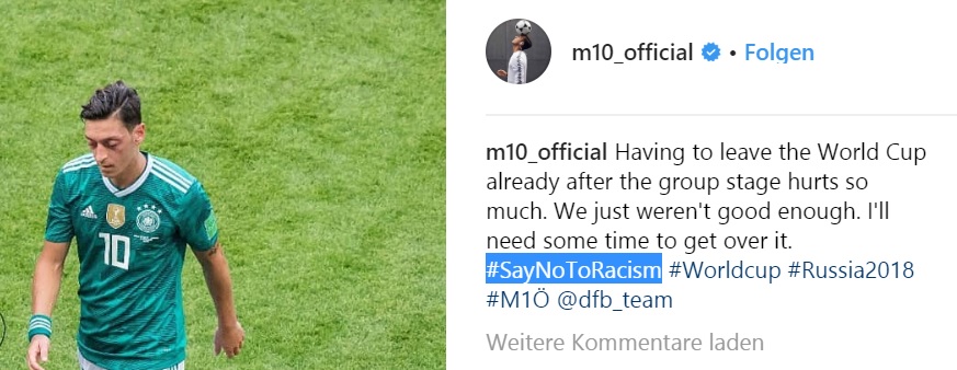 ... "Rassismus" habe etwas mit dem peinlichen Ausscheiden der "Mannschaft" in der Vorrunde zu tun. Sind am Ende die bösen Rechtspopulisten schuld, dass der Arme seine Leistung auf dem Platz nicht abrufen konnte?