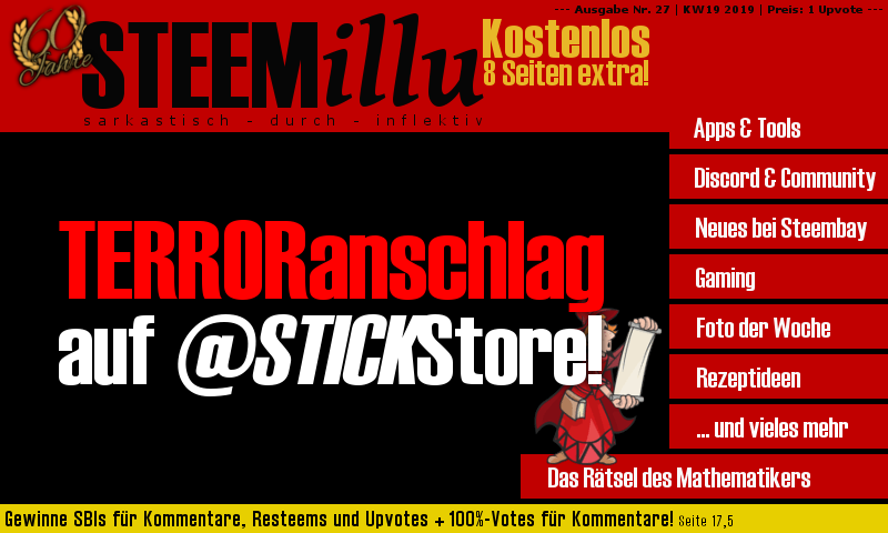 Drugwars | NextColony | SteemMonsters | SteemBay NosDos | Rezeptideen | Gewinne mit STEEMillu! | uvm. Hier gehts zum Artikel von @steemillu |