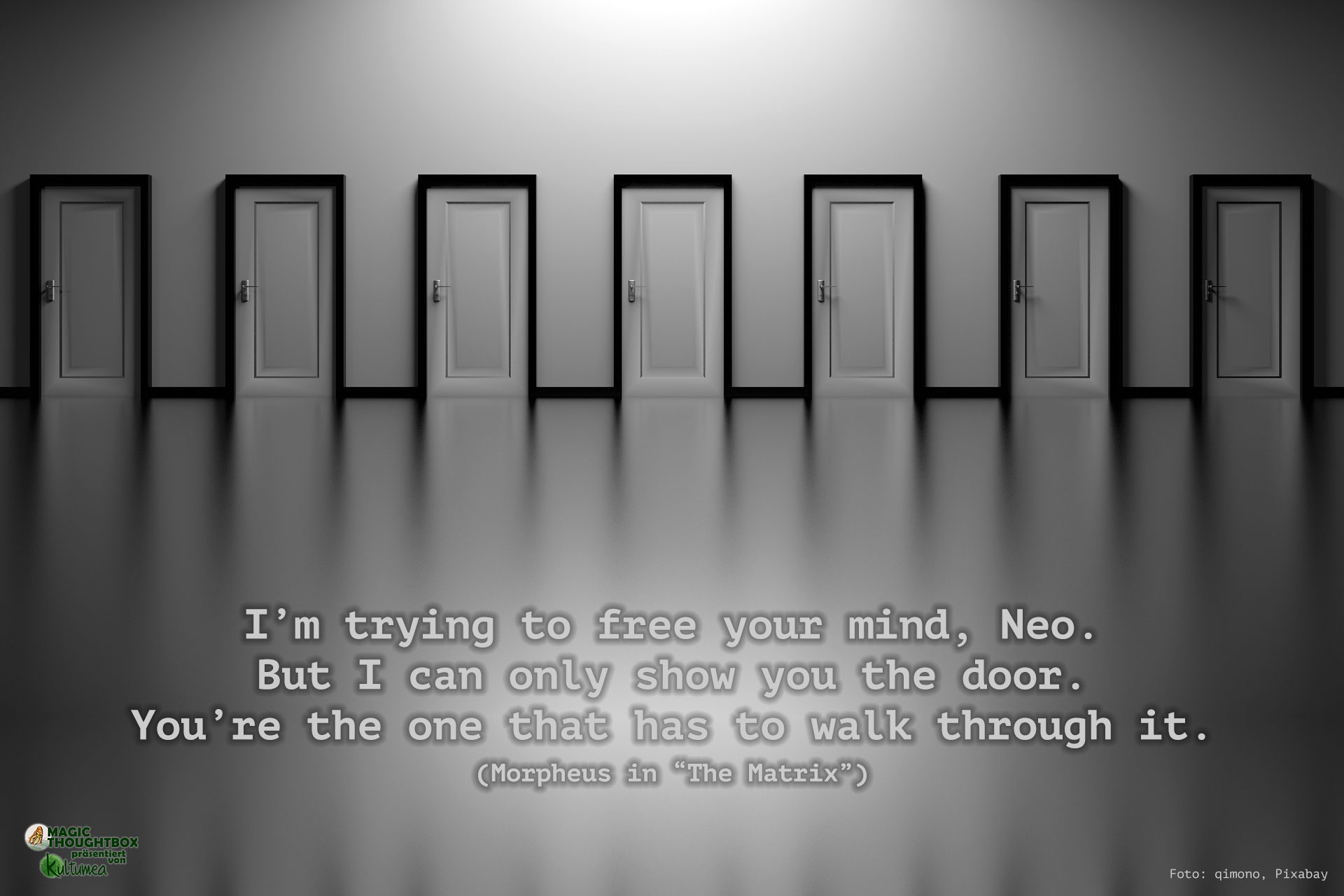 I'm trying to free your mind, Neo. But I can only show you the door. You're the one that has to walk through it.