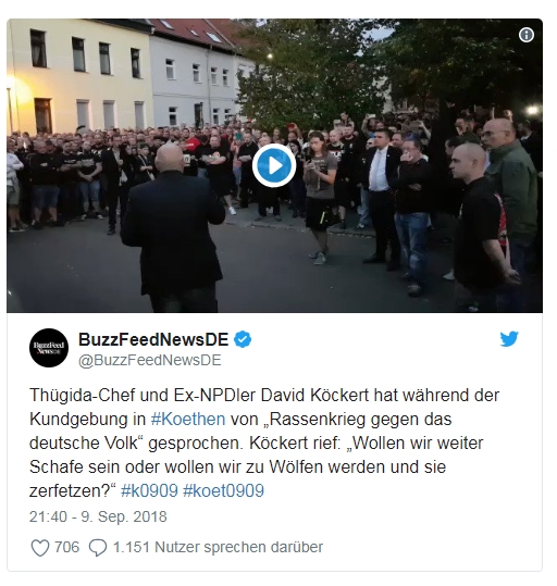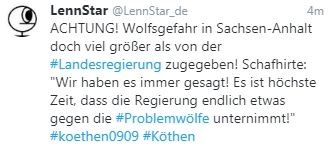 Jetzt haben sich die Rechtsextremen natürlich wieder an diesem Fall aufgegeilt. Nach einem Video auf Twitter kam dabei auch wieder der Spruch von den Wölfen und Schafen.