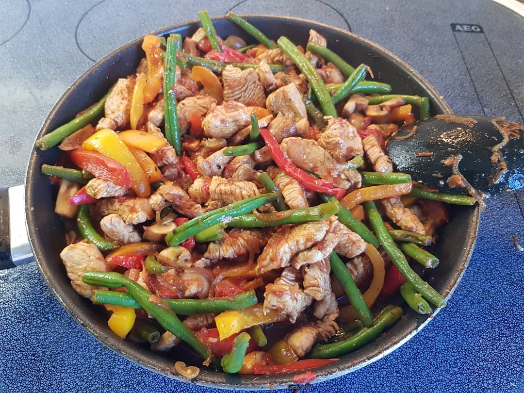 Heute gab es Chicken mit Grünen Bohnen und allerlei Gemüse. Es war sehr gut zu essen und hat geschmeckt.
