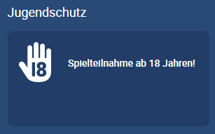 Die Teilnahme für Personen unter 18 Jahren ist aus Gründen des Jugendschutzes nicht erlaubt. Zudem wird darauf hingewiesen, dass Glücksspiele süchtig machen können. Weitere Informationen dazu erhaltet ihr unter folgendem Link https://www.check-dein-spiel.de/