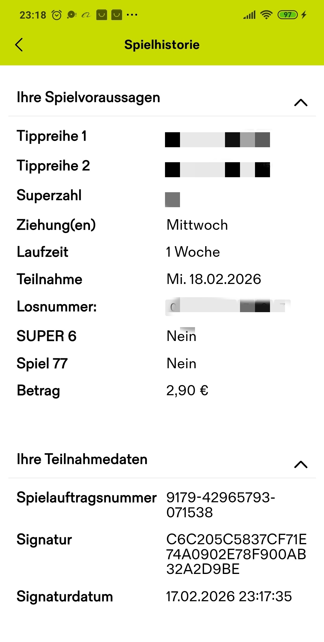 Diesmal wetten wir anlässlich des gestiegenen Jackpots ☀️🤗 mit 2 Reihen auf ein sorgenfreies Leben.