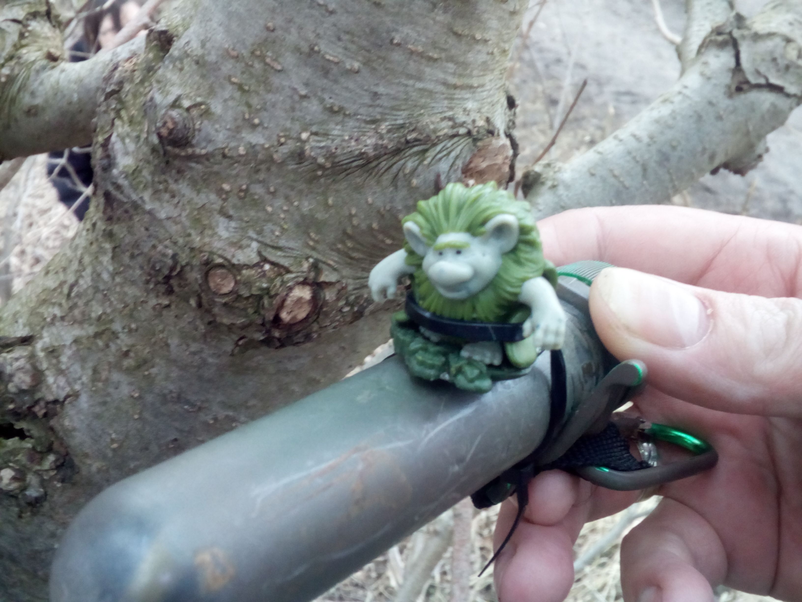 Hier konnten die Kinder leider noch nicht mithelfen das Logbuch zu bergen, aber entdeckt hat der Große den Troll sofort. Hier musste ich dann ran um auf den Baum zu klettern.