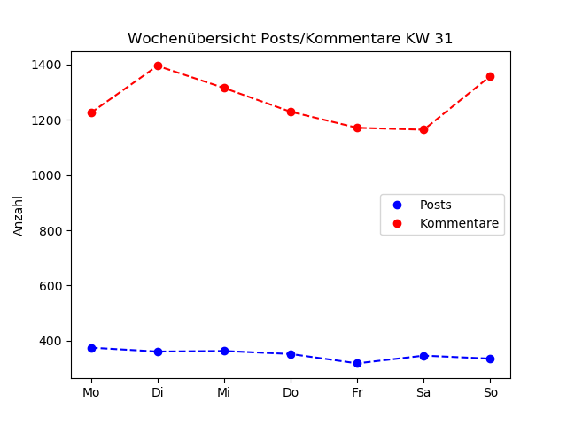 | Wochentag | Posts | Kommentare | Diagramm |