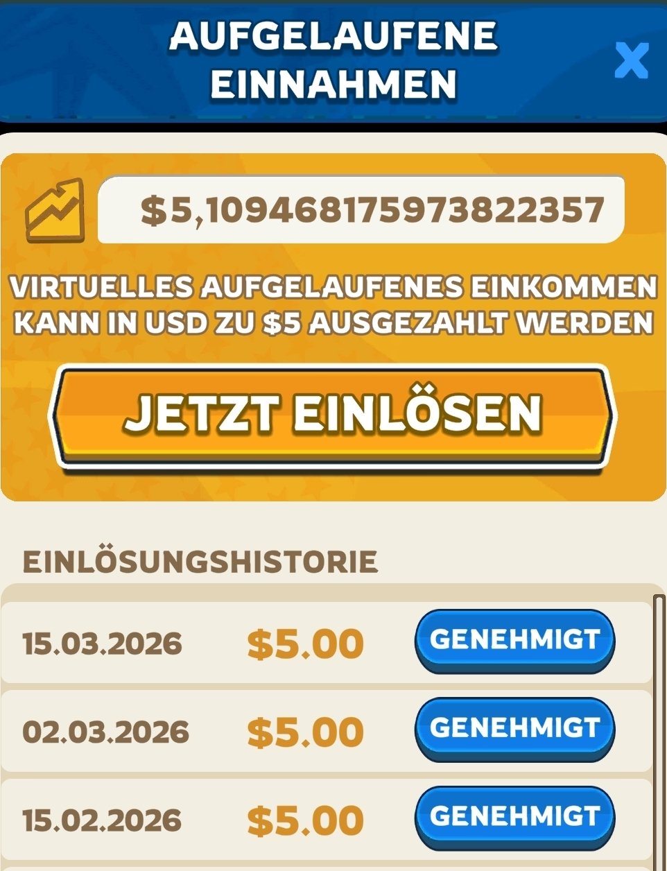 | 03/15/2026 | $5 | 13 |