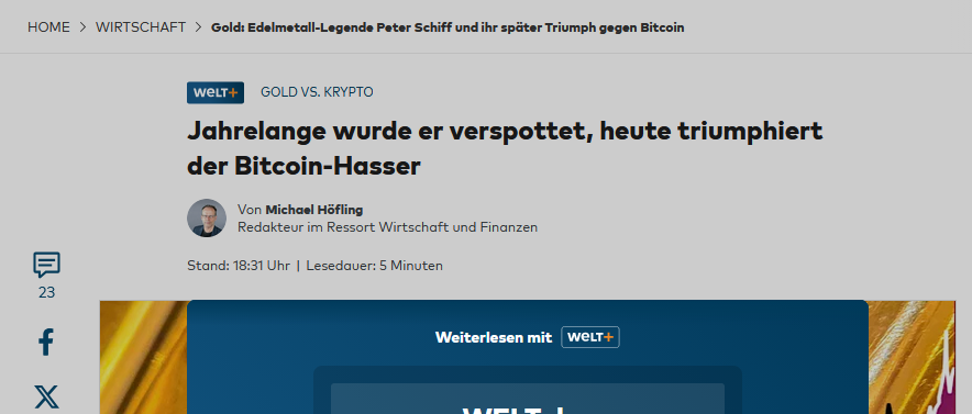So can someone explain to me who still takes him seriously when it comes to “gold vs. Bitcoin”? Oh crap, now I've reported on him in this context too, but at least I didn't mention his name.