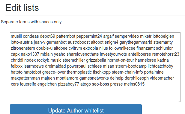 Das ganze ist natürlich nur ein völlig subjektiver Eindruck, aber ich habe kaum einen "unbekannten" Namen unter den Resteems entdeckt. Das ist doch eigentlich schade, immer die selben Leute nach vorne zu zerren, um denen noch einen zusätzlichen Dollar reinzuschieben, der ja gar nicht verdient ist, sondern nur durch Reputation und Dankbarkeit zustande kommt.