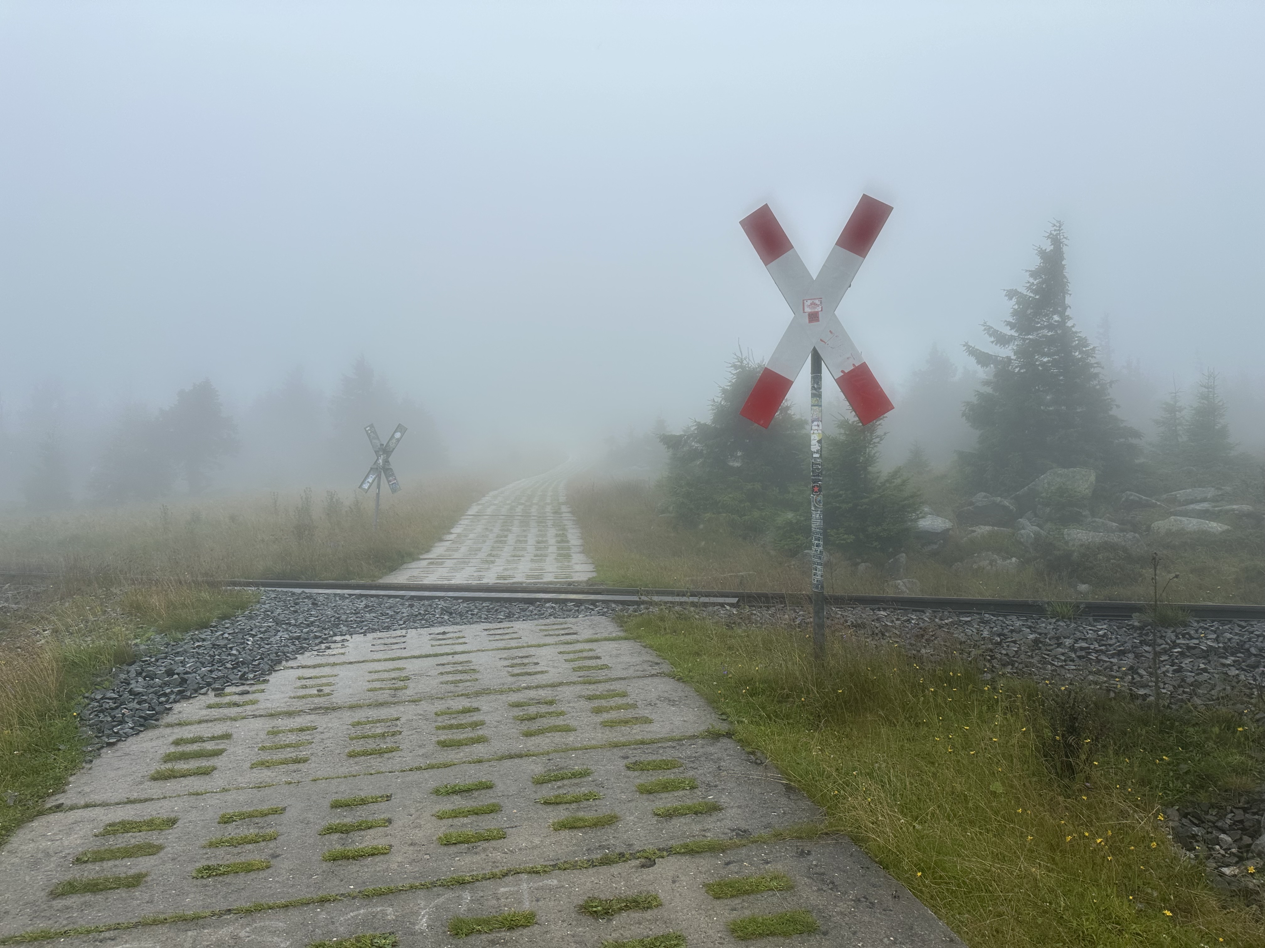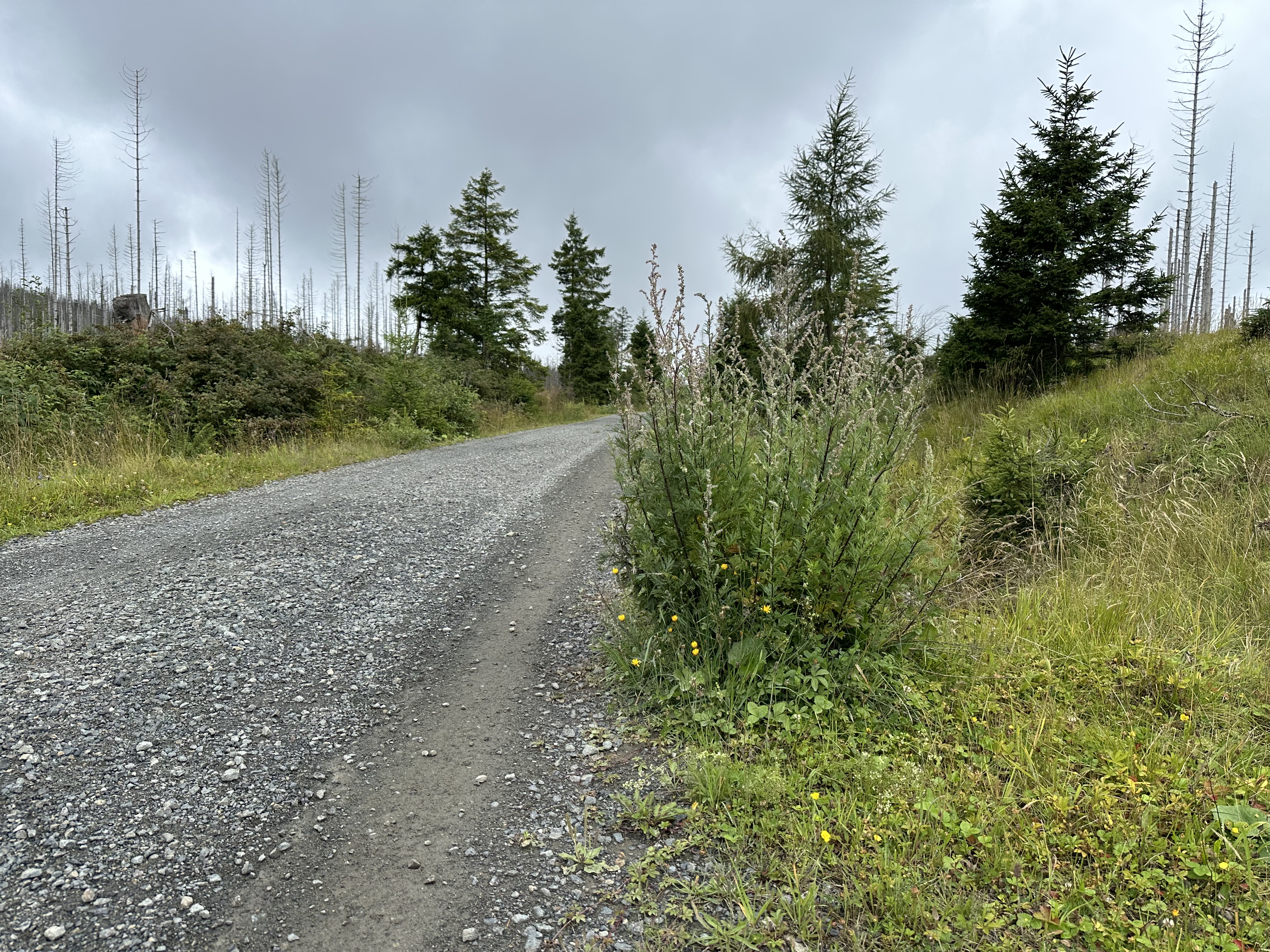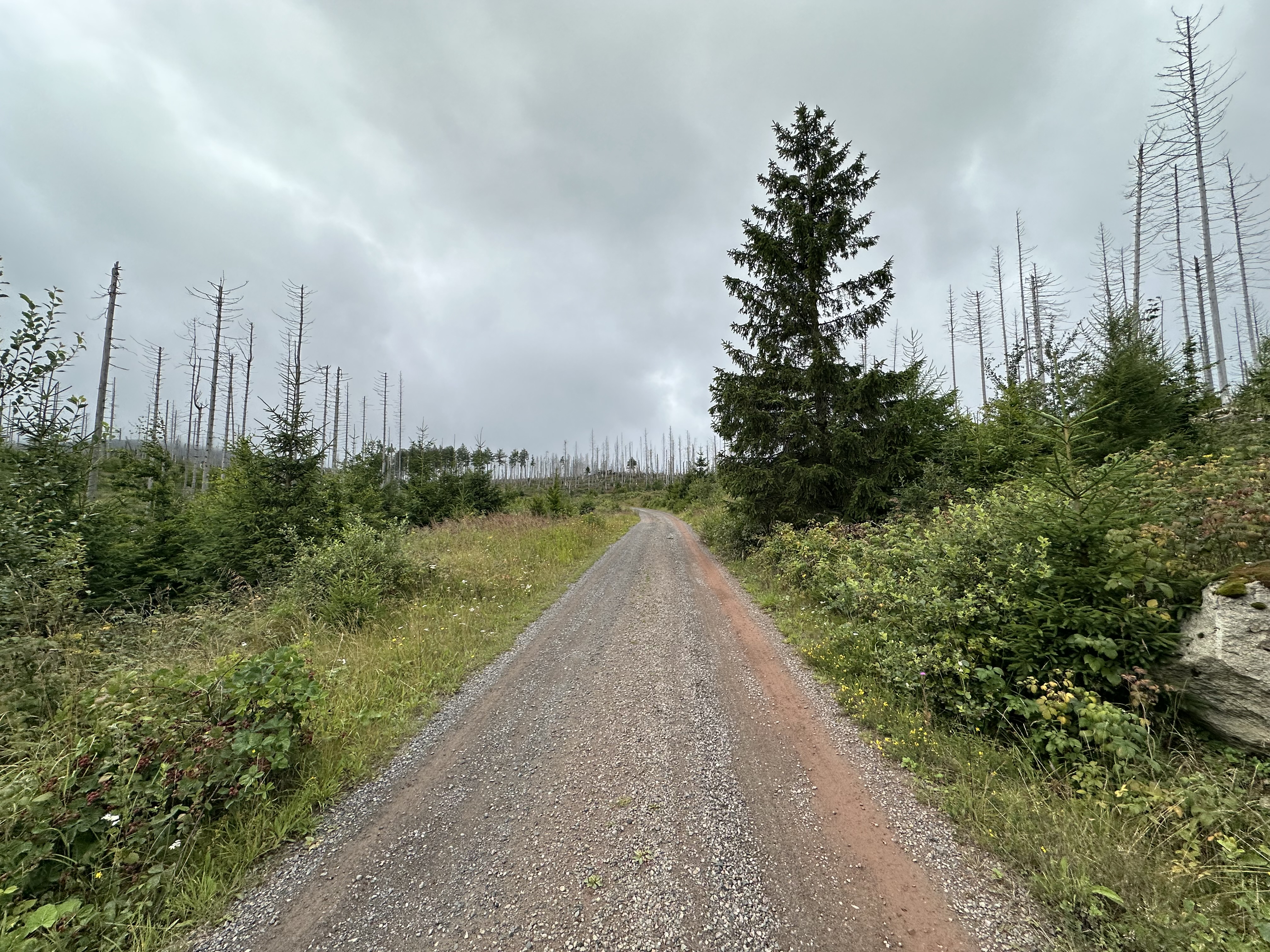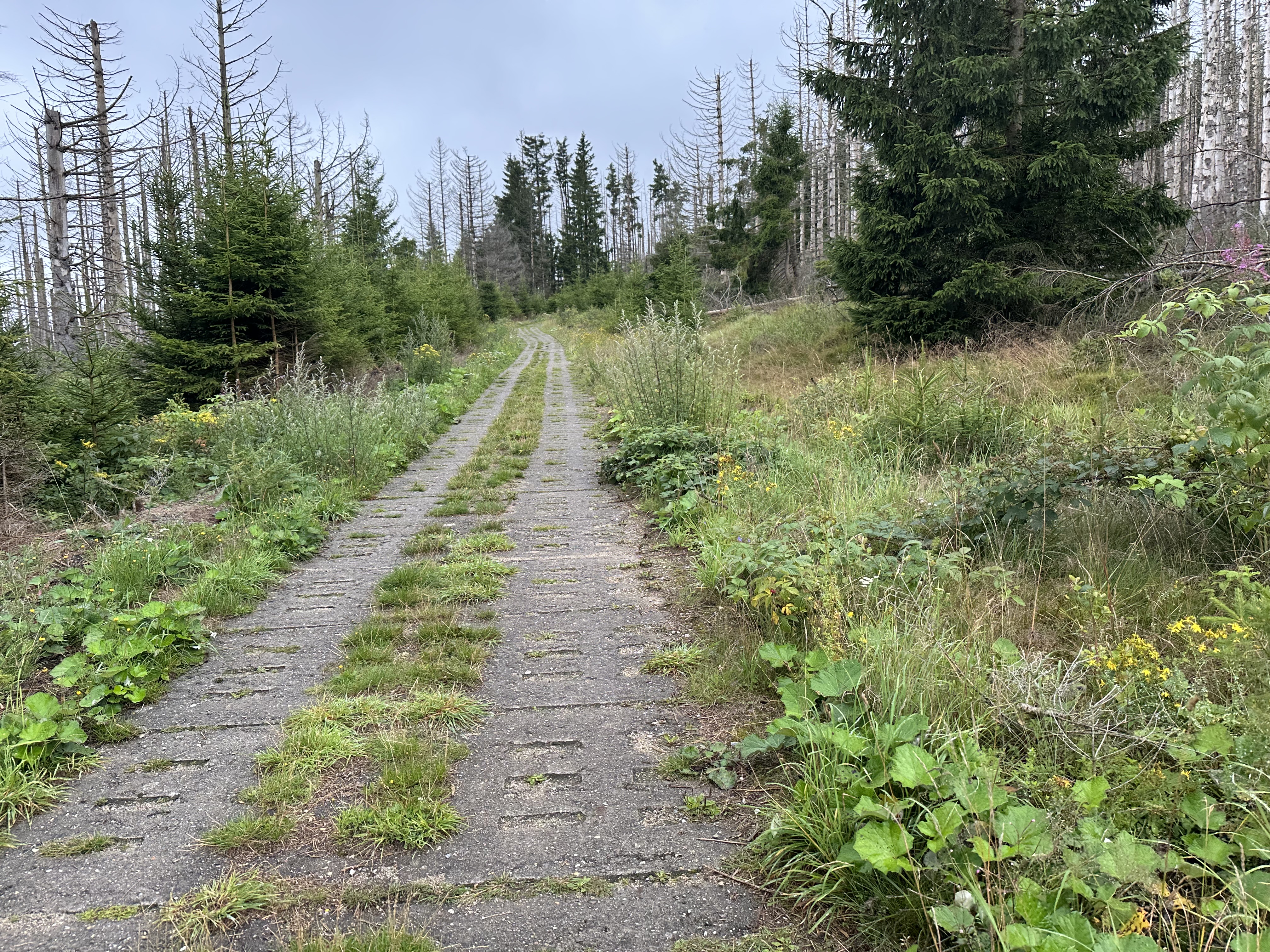 Du hast nun das allerschlimmste hinter Dir. Herzlich Willkommen auf dem „Kleinen Brocken“. Es folgt ein langes flaches Stück mit Blick auf den Brocken, sofern kein Nebel herrscht. Bis zum Bahndamm wird es zwar langsam nochmal etwas steiler, aber das ist nichts im Vergleich zu dem davor.