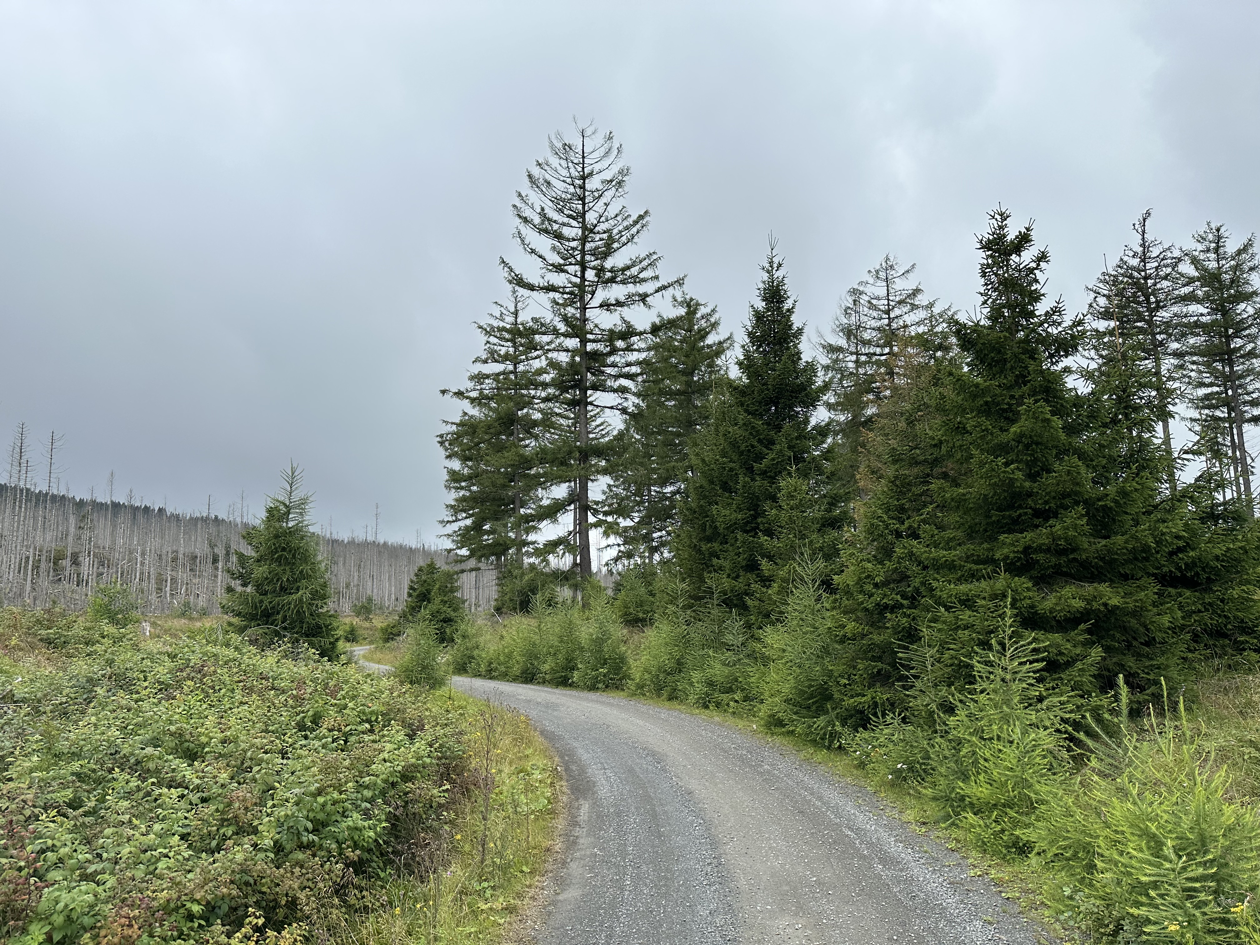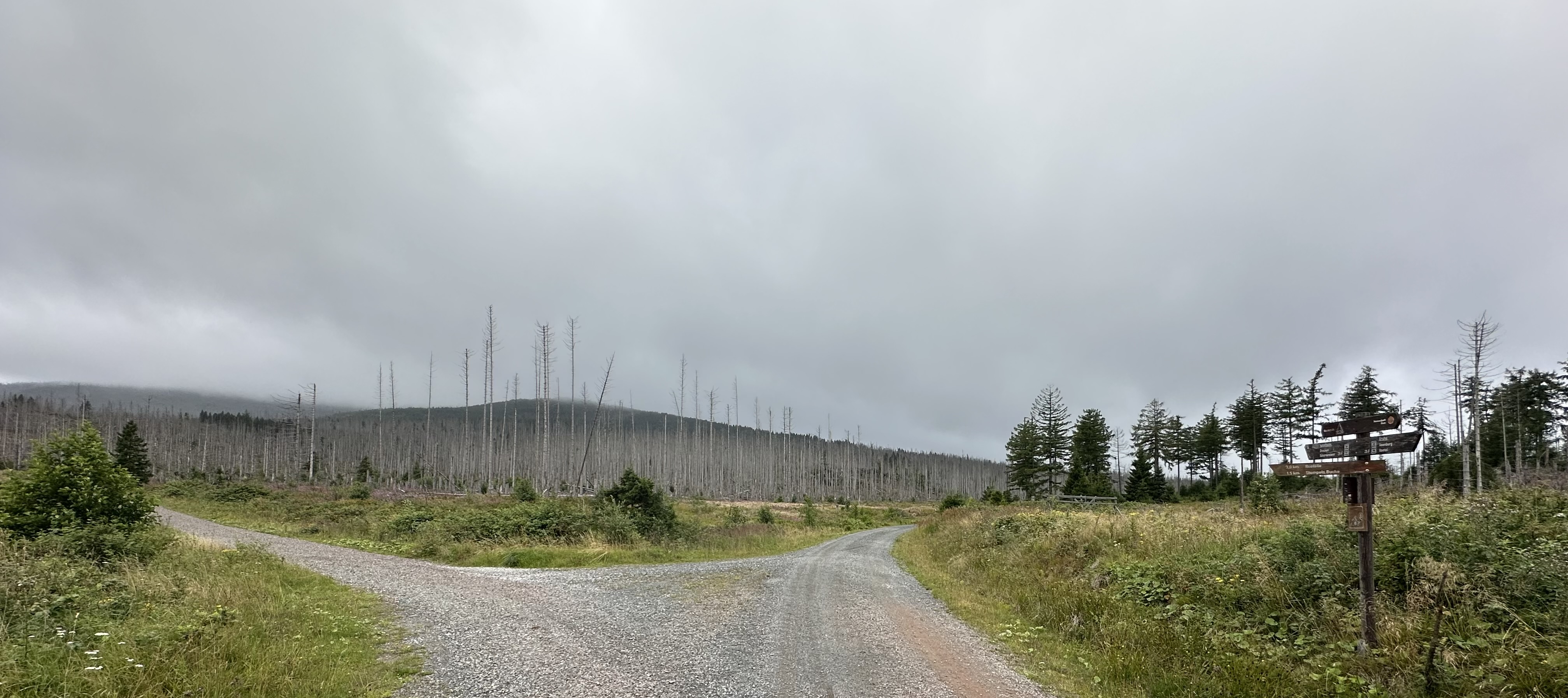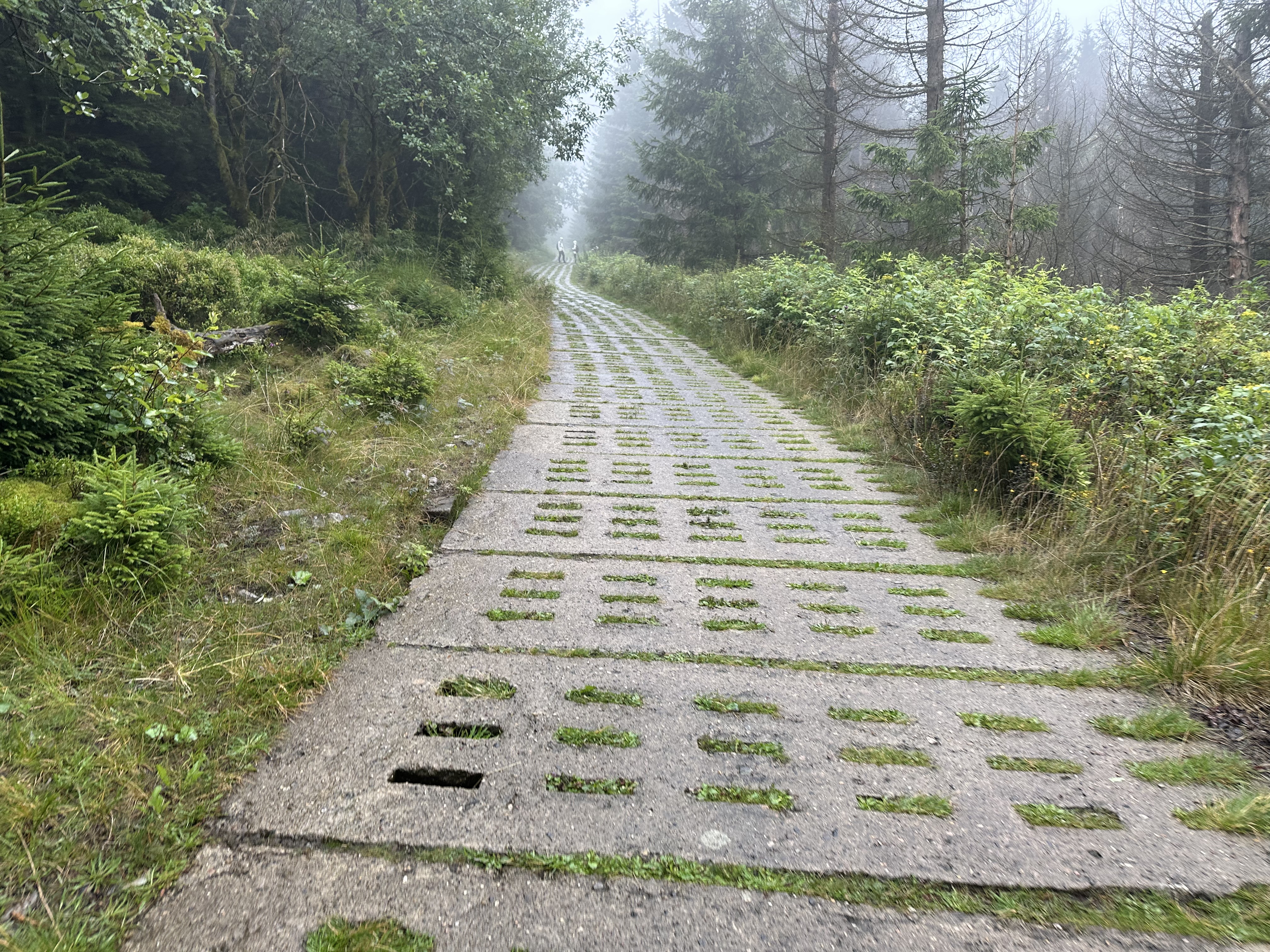 Du hast nun das allerschlimmste hinter Dir. Herzlich Willkommen auf dem „Kleinen Brocken“. Es folgt ein langes flaches Stück mit Blick auf den Brocken, sofern kein Nebel herrscht. Bis zum Bahndamm wird es zwar langsam nochmal etwas steiler, aber das ist nichts im Vergleich zu dem davor.