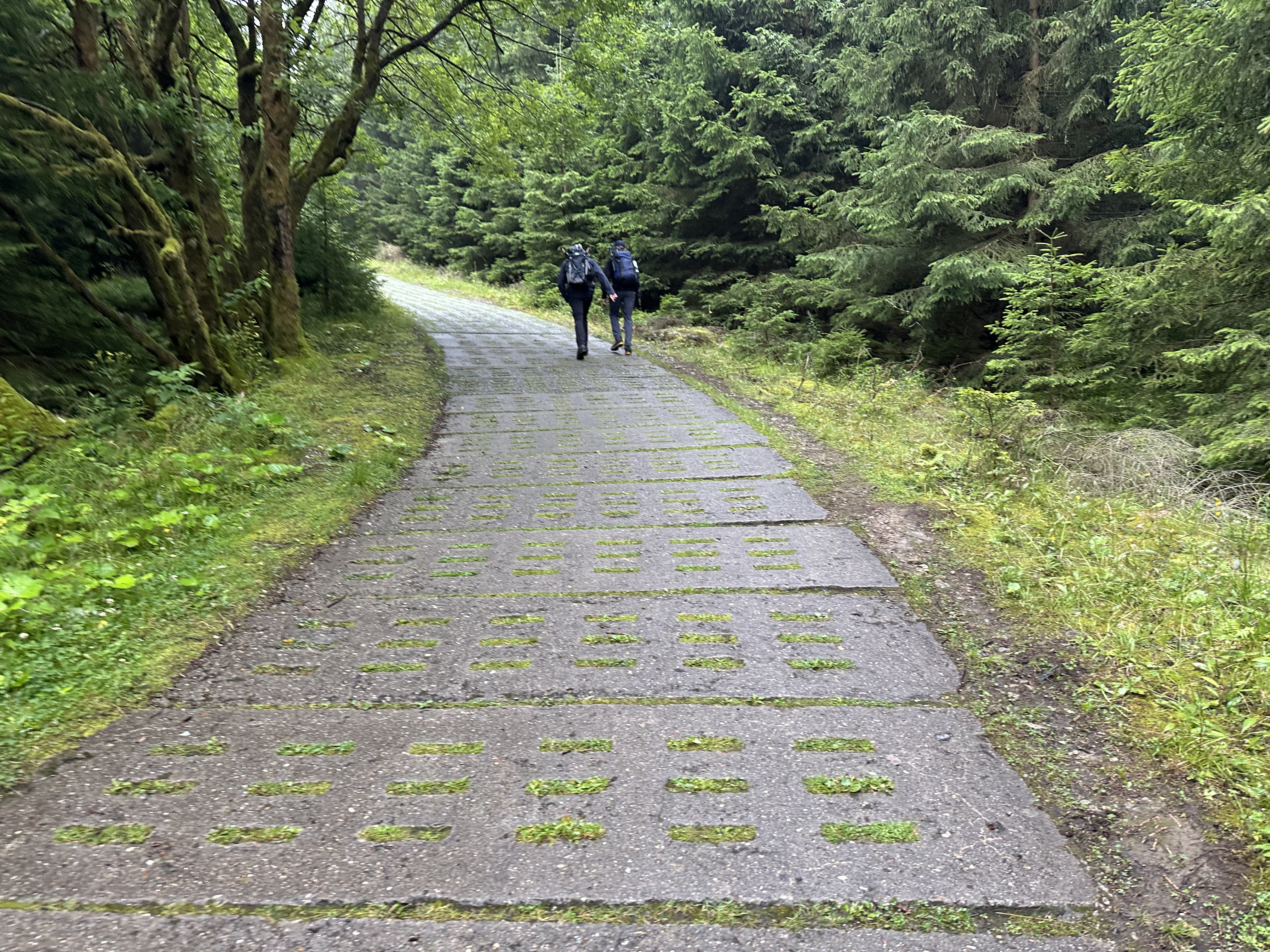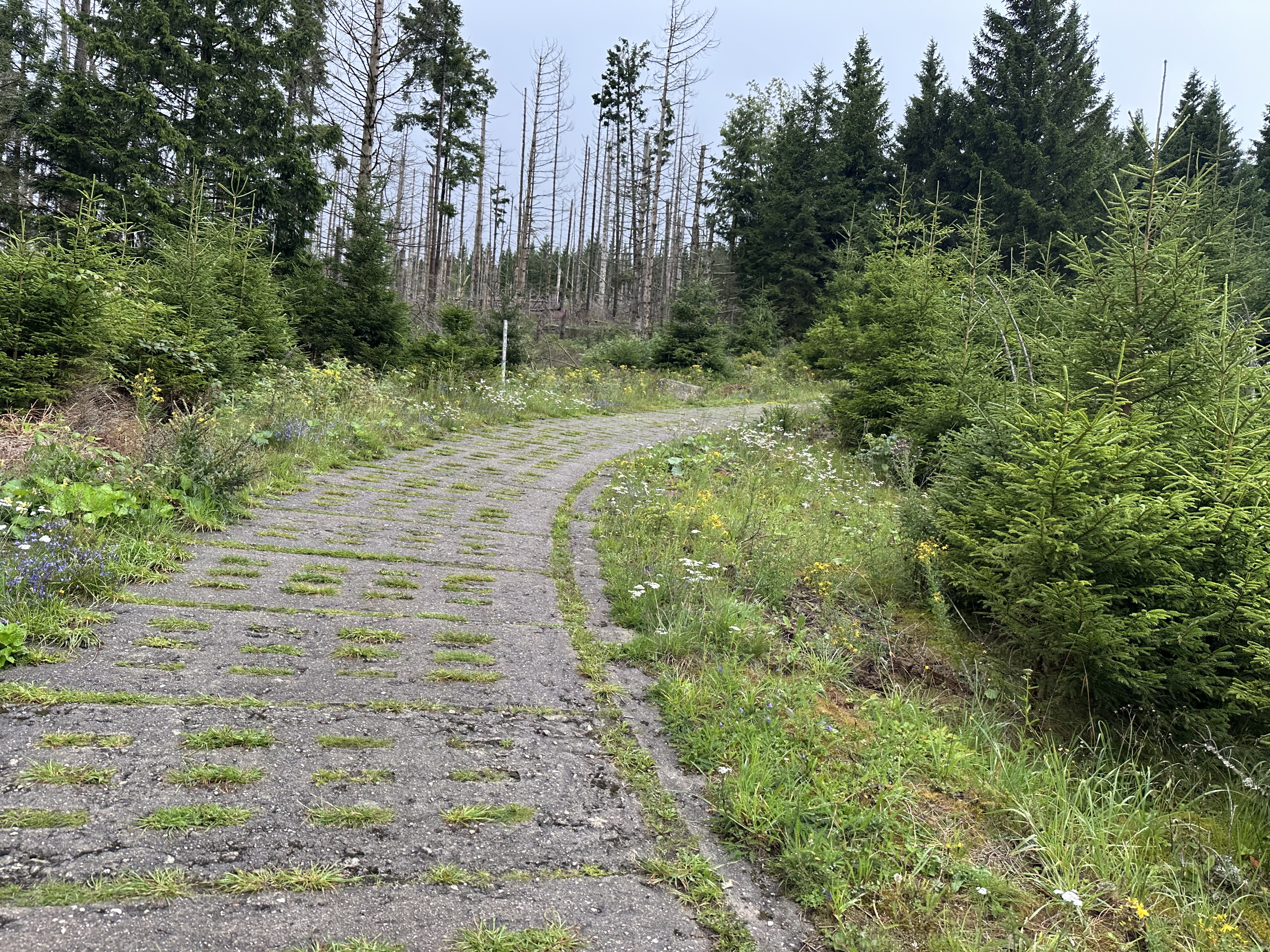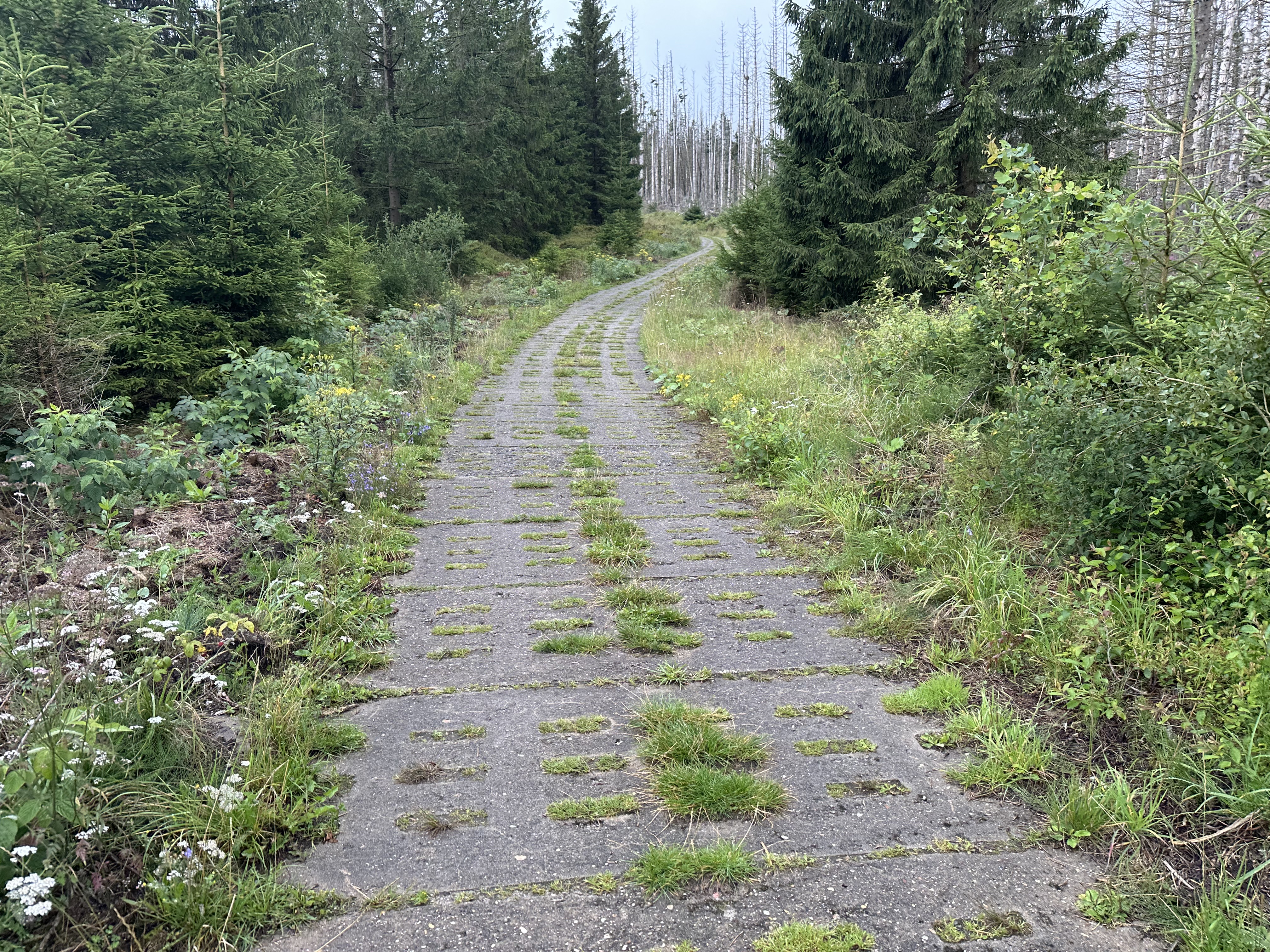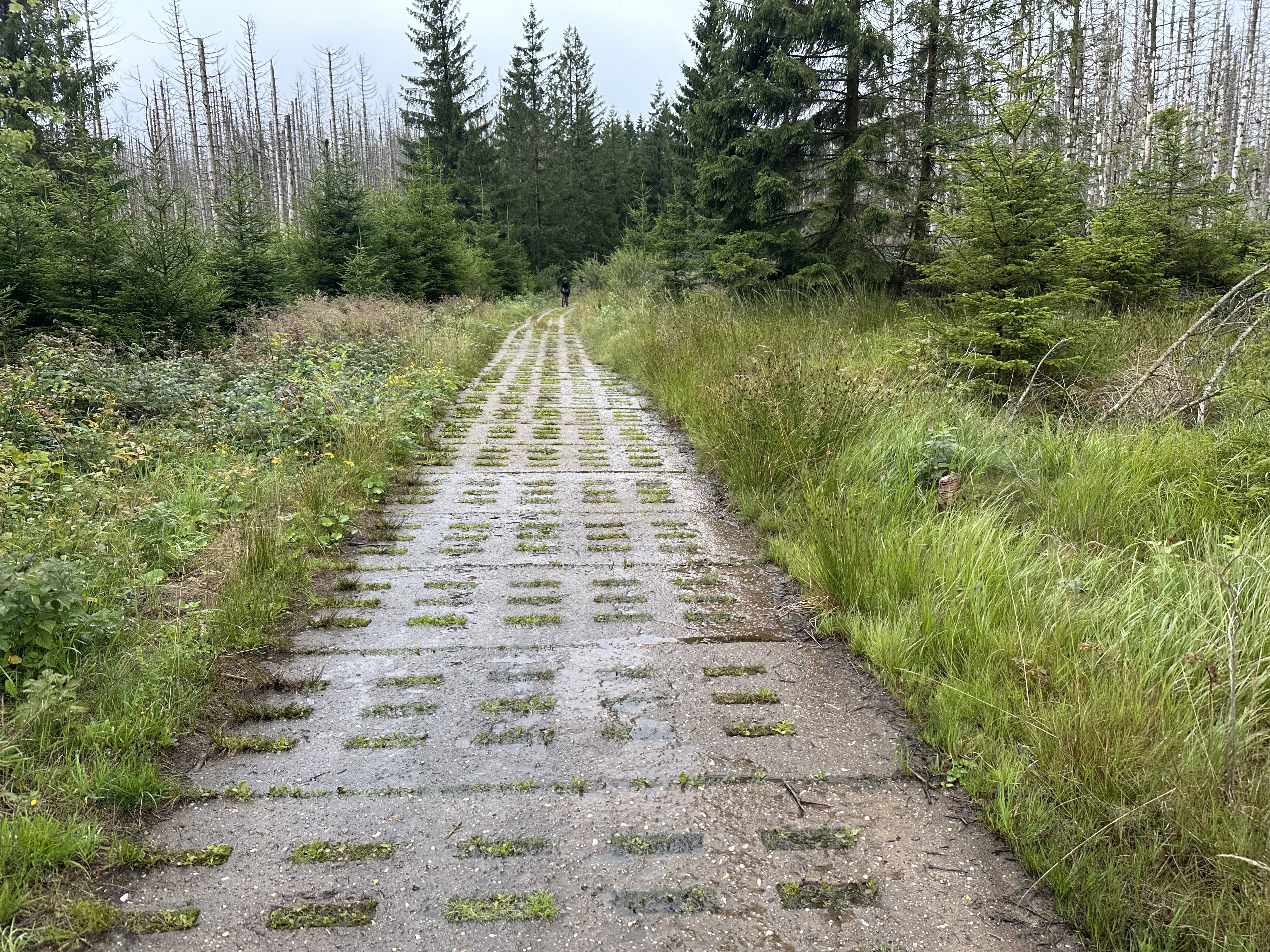 Du hast nun das allerschlimmste hinter Dir. Herzlich Willkommen auf dem „Kleinen Brocken“. Es folgt ein langes flaches Stück mit Blick auf den Brocken, sofern kein Nebel herrscht. Bis zum Bahndamm wird es zwar langsam nochmal etwas steiler, aber das ist nichts im Vergleich zu dem davor.
