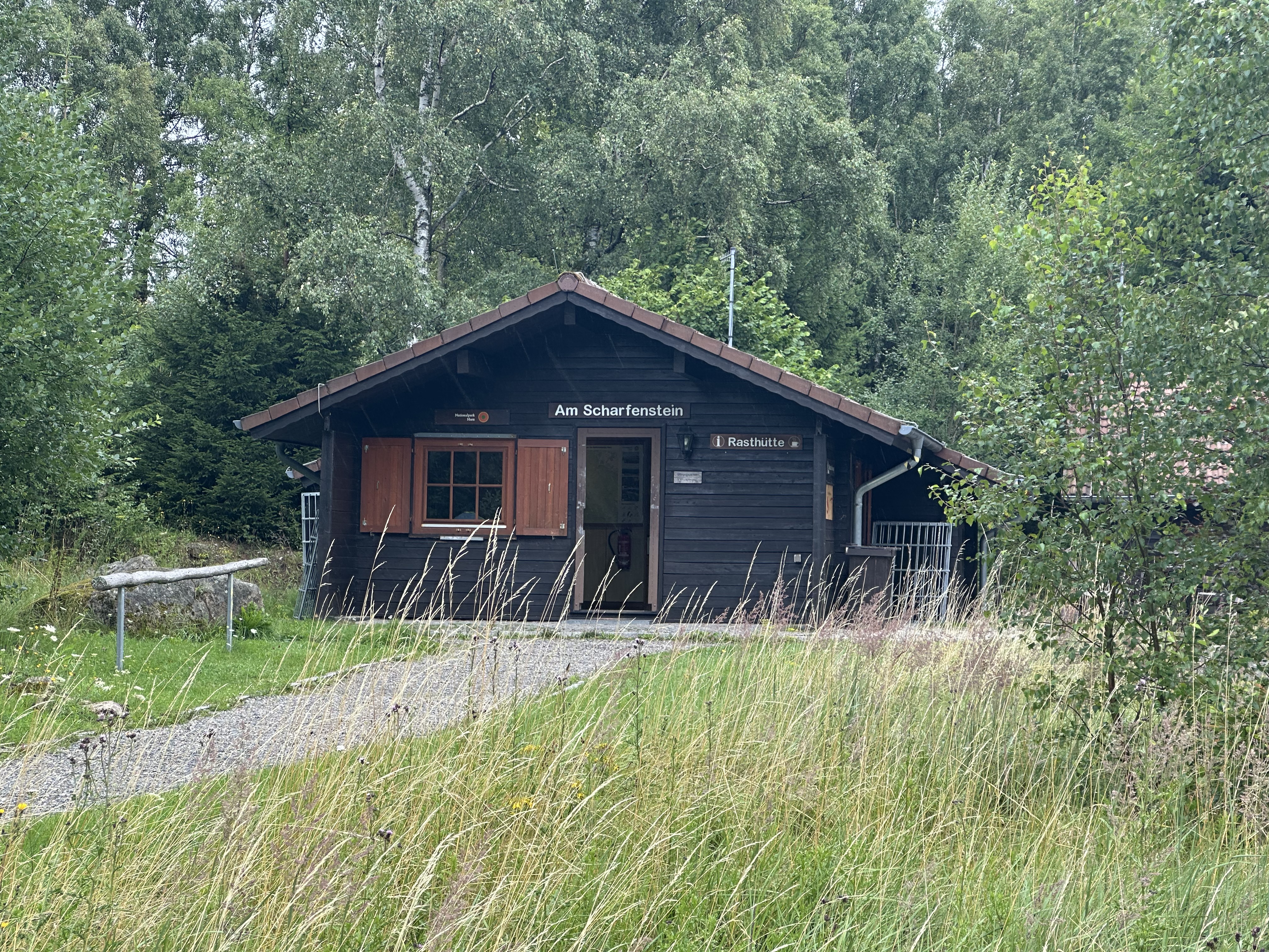 Beginnen tut es an der Rangerstation am Scharfenstein, da ich noch nie dort oben war, vermute ich der Scharfenstein ist der Berg links neben der Station.