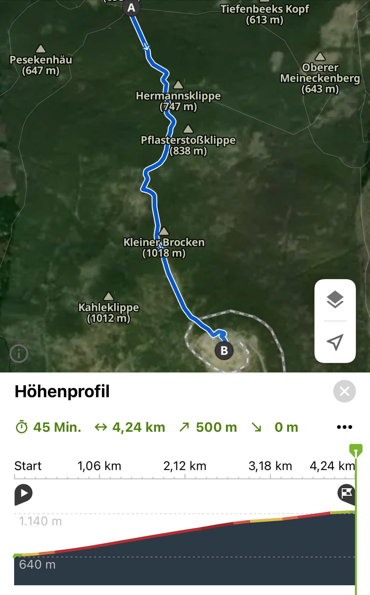 - sind es laut Trackingapp (wo die Strecken-/ Höhenprofil- Bilder auch her kommen) genau 500 Höhenmeter?