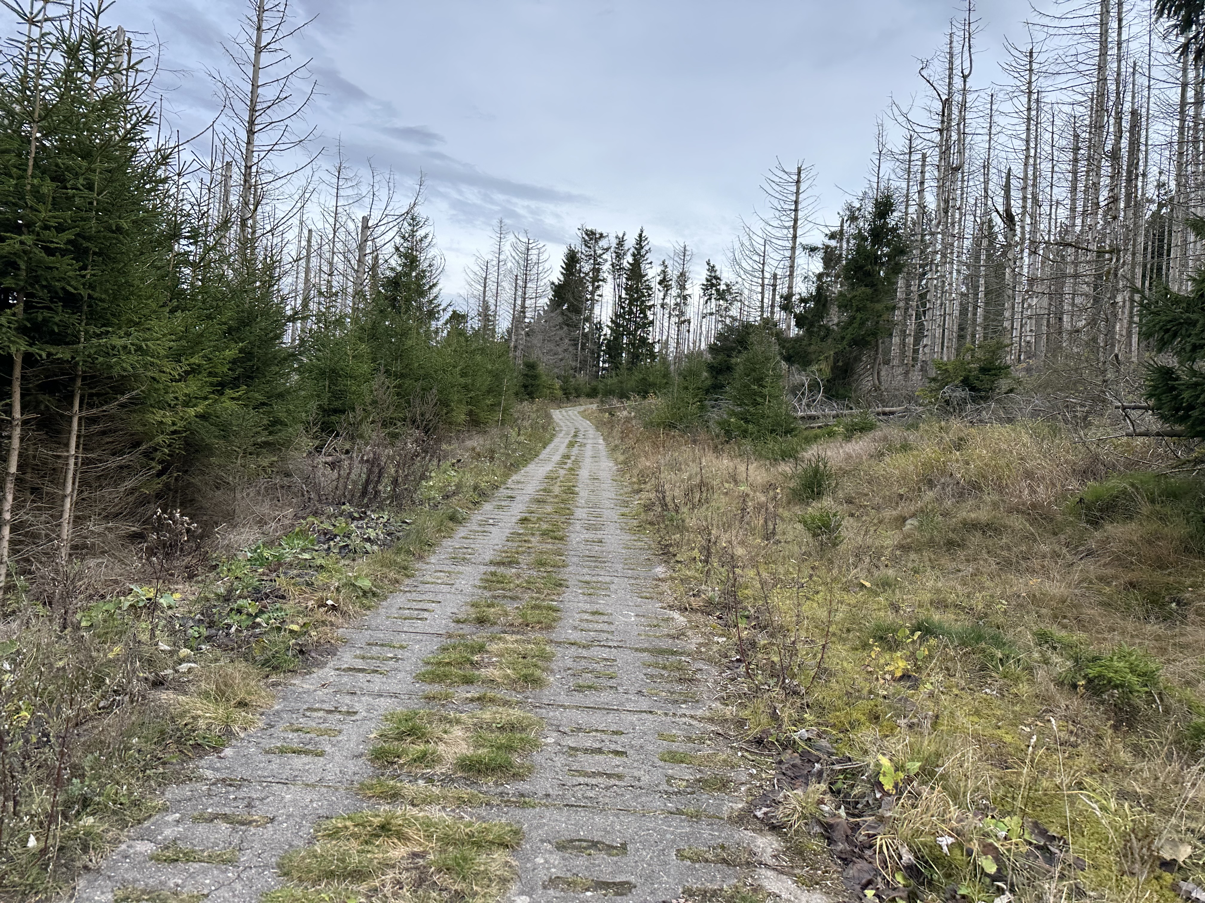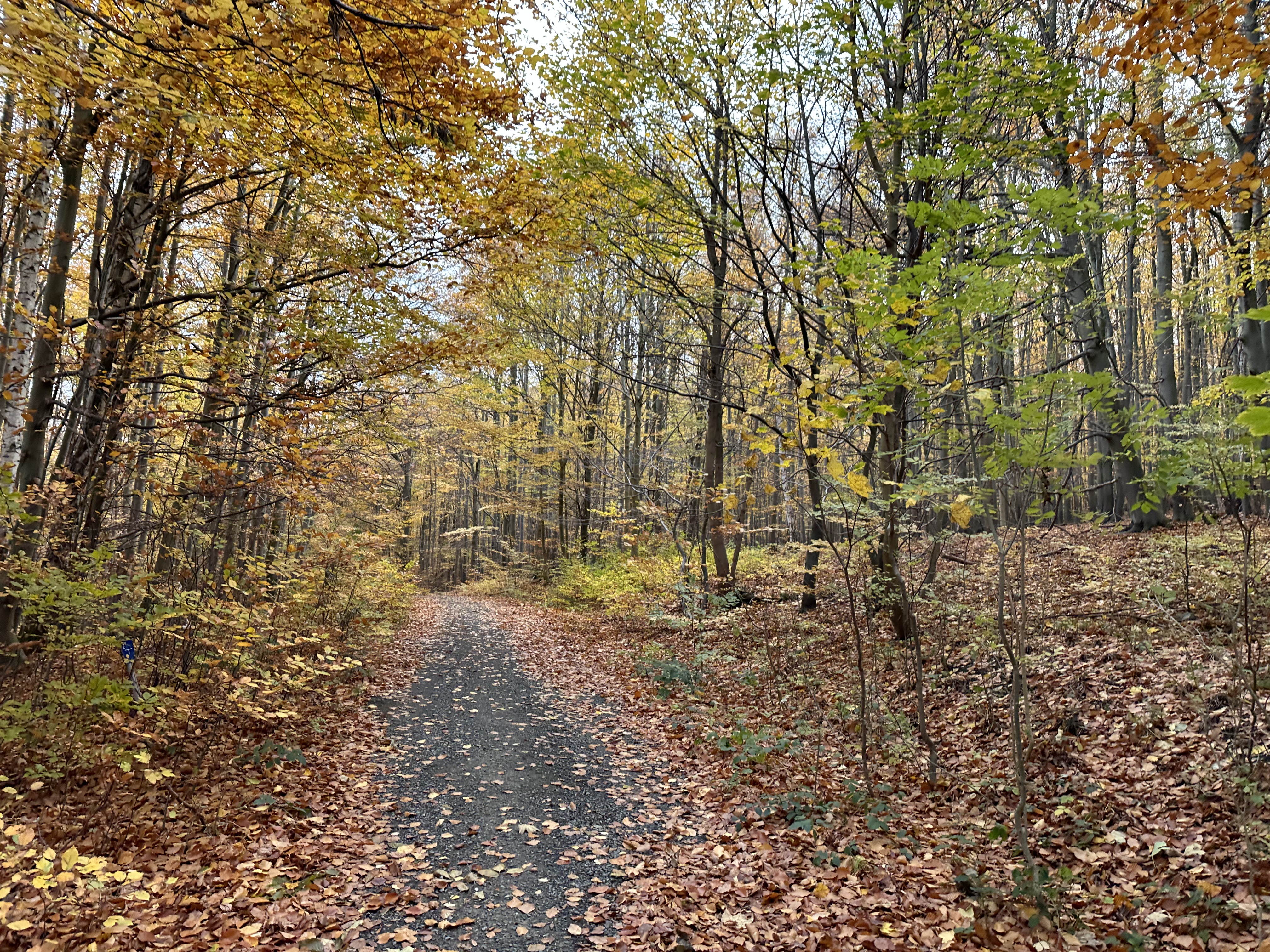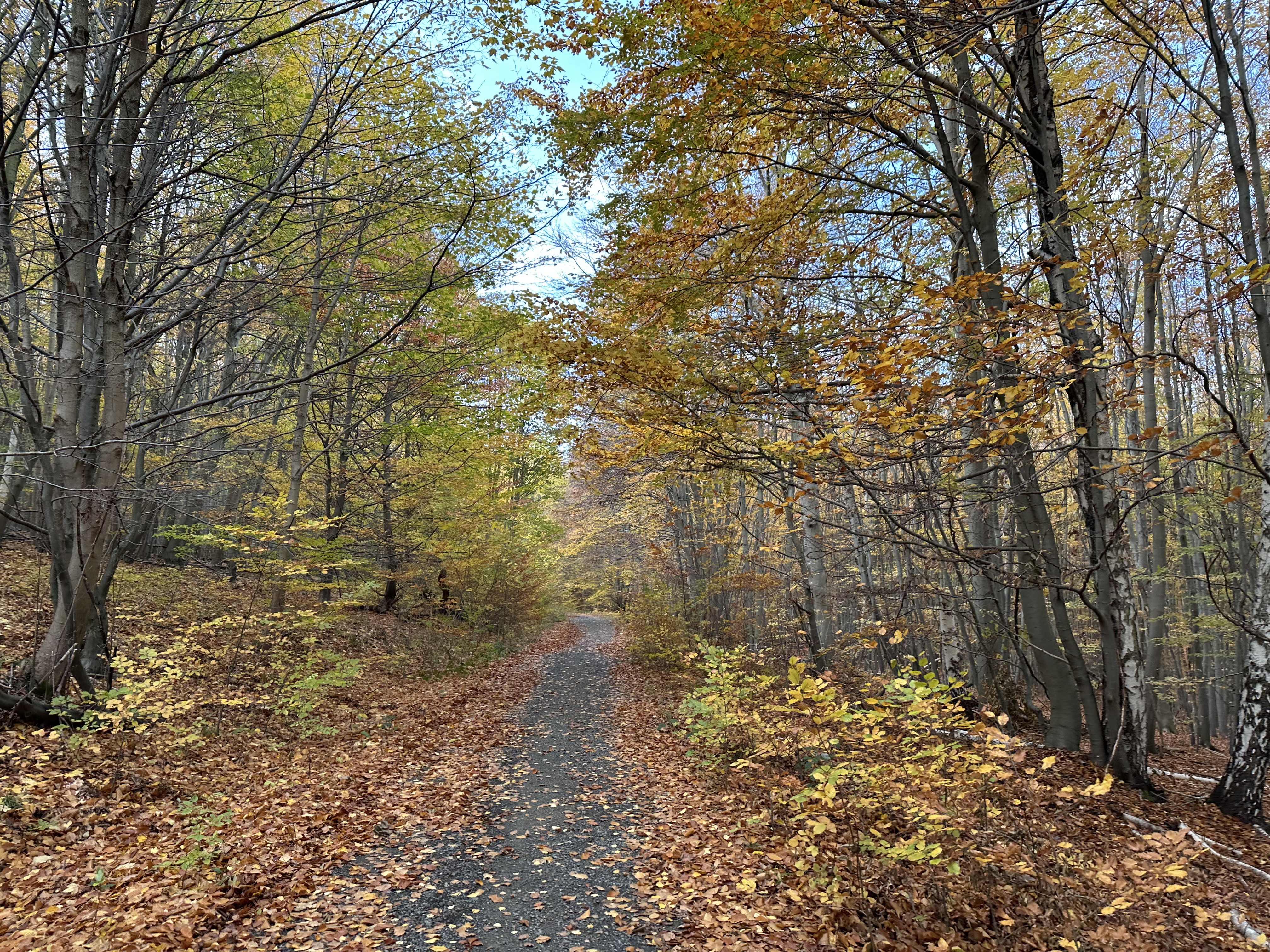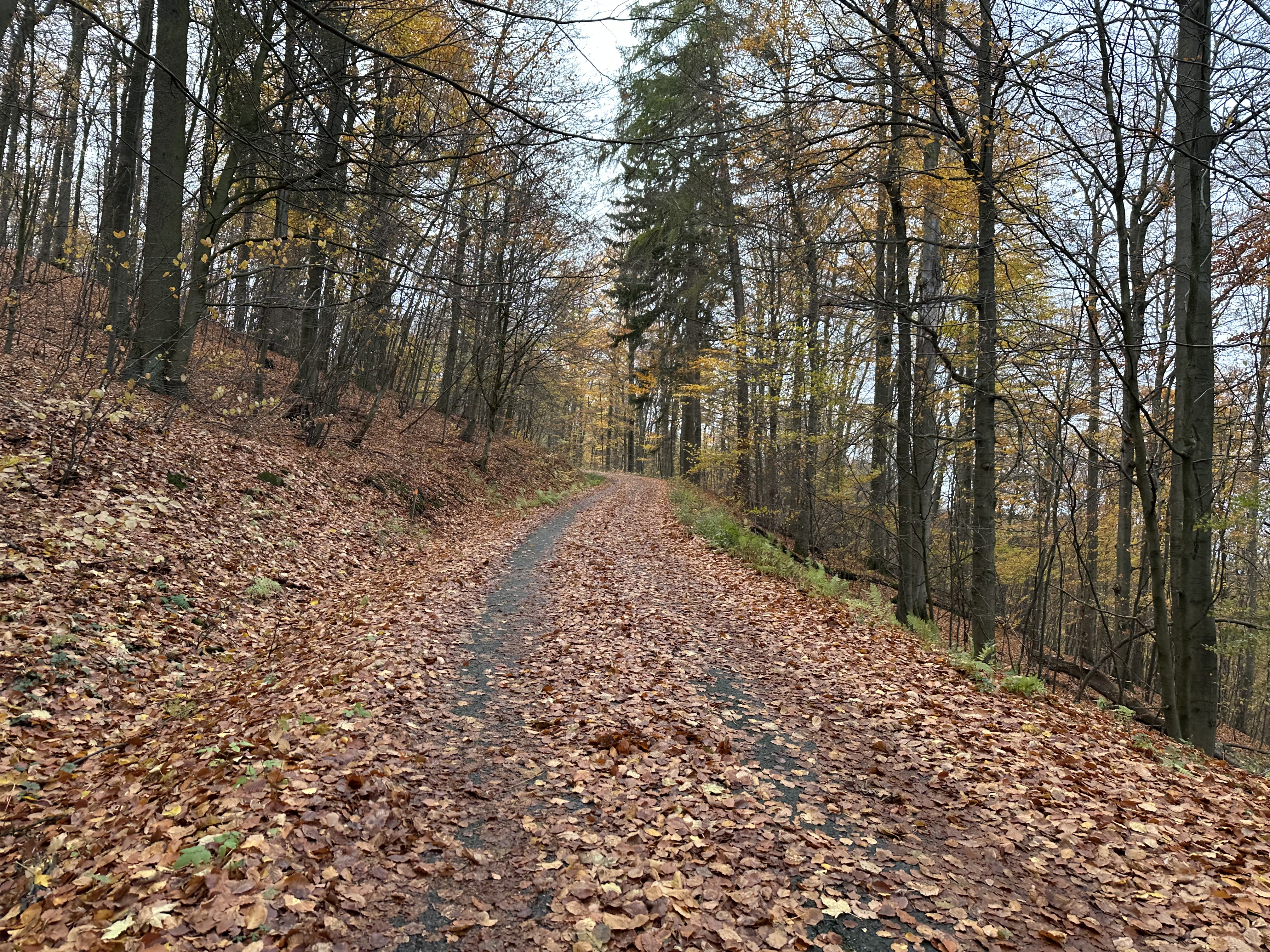 Der Waldweg Ilsenburg - Harzburg war größtenteils mit viel Laub bedeckt, was zwar sehr gut aussah, aber zum Fahrradfahren nicht so opti ist. Weil einerseits könnte so ein Mistkäfer oder anderes Viech sich da drinnen „eingewintermuckelt“ haben und anderseits sieht man nicht wie der Weg darunter beschaffen ist.