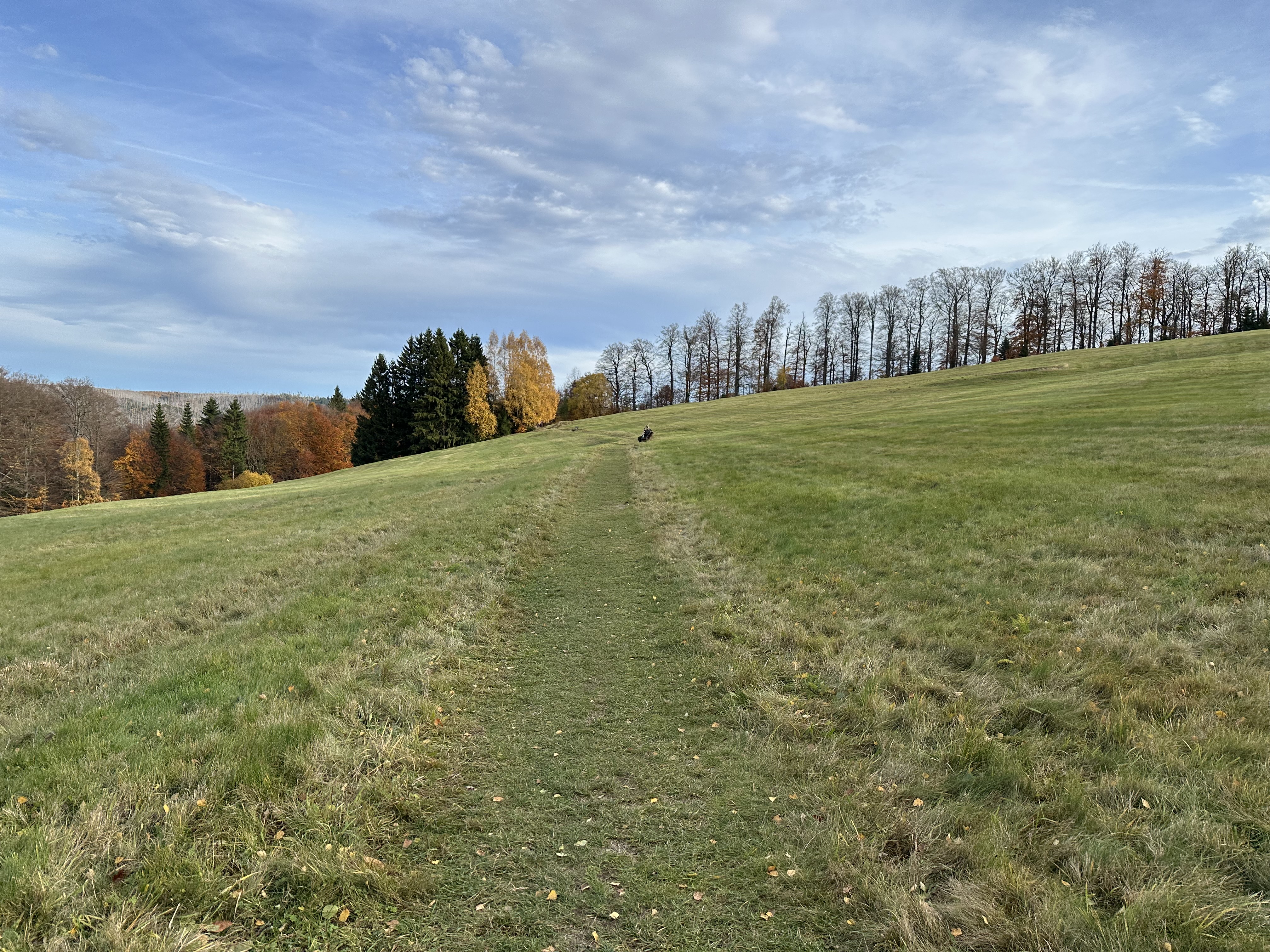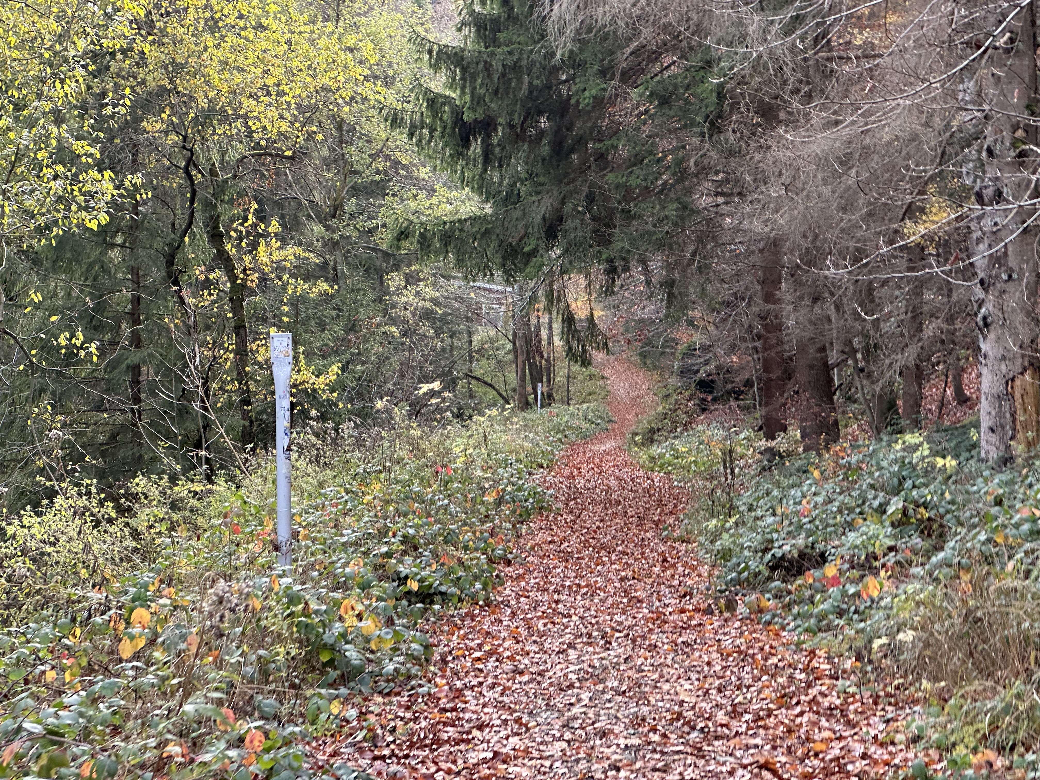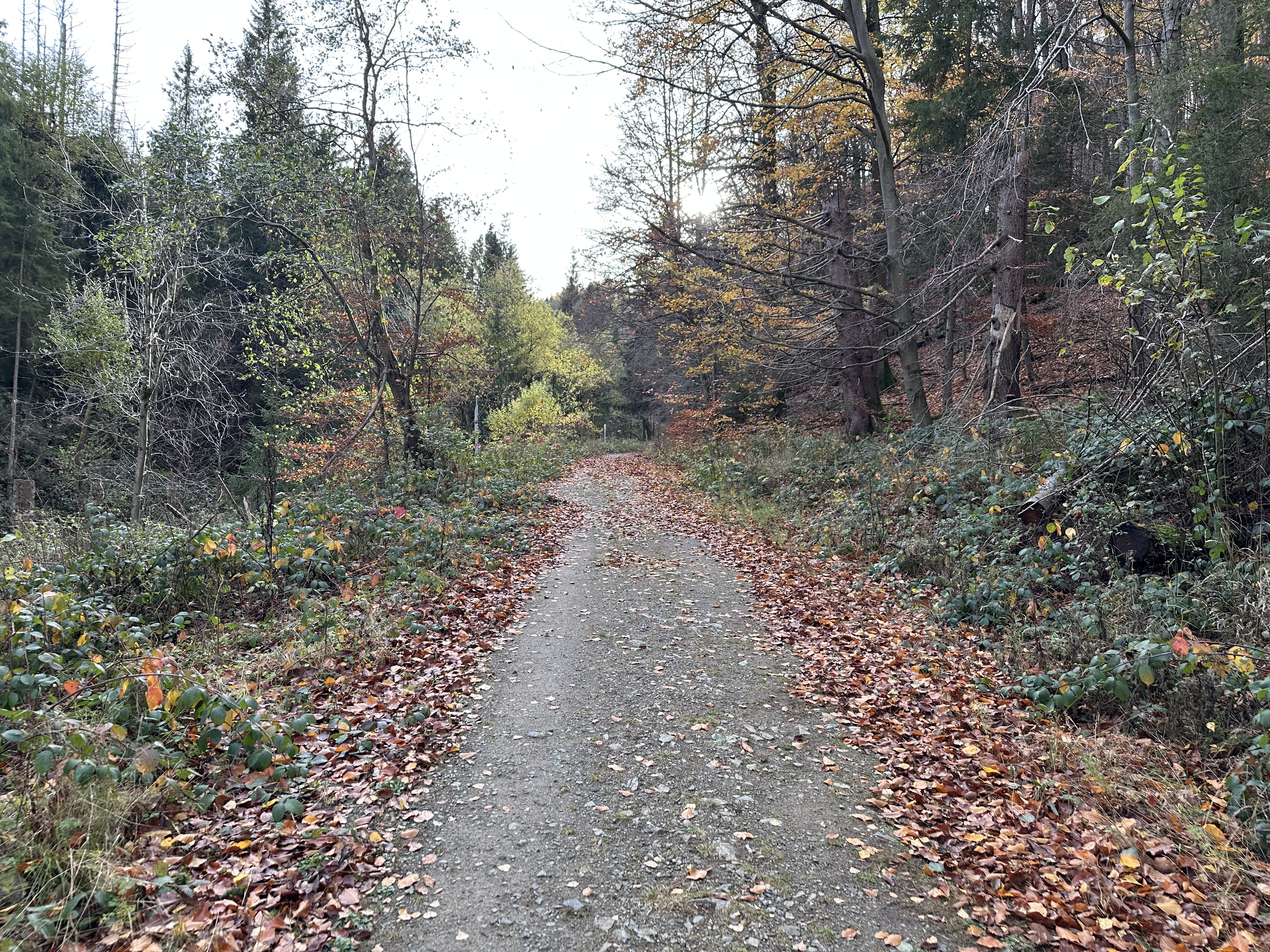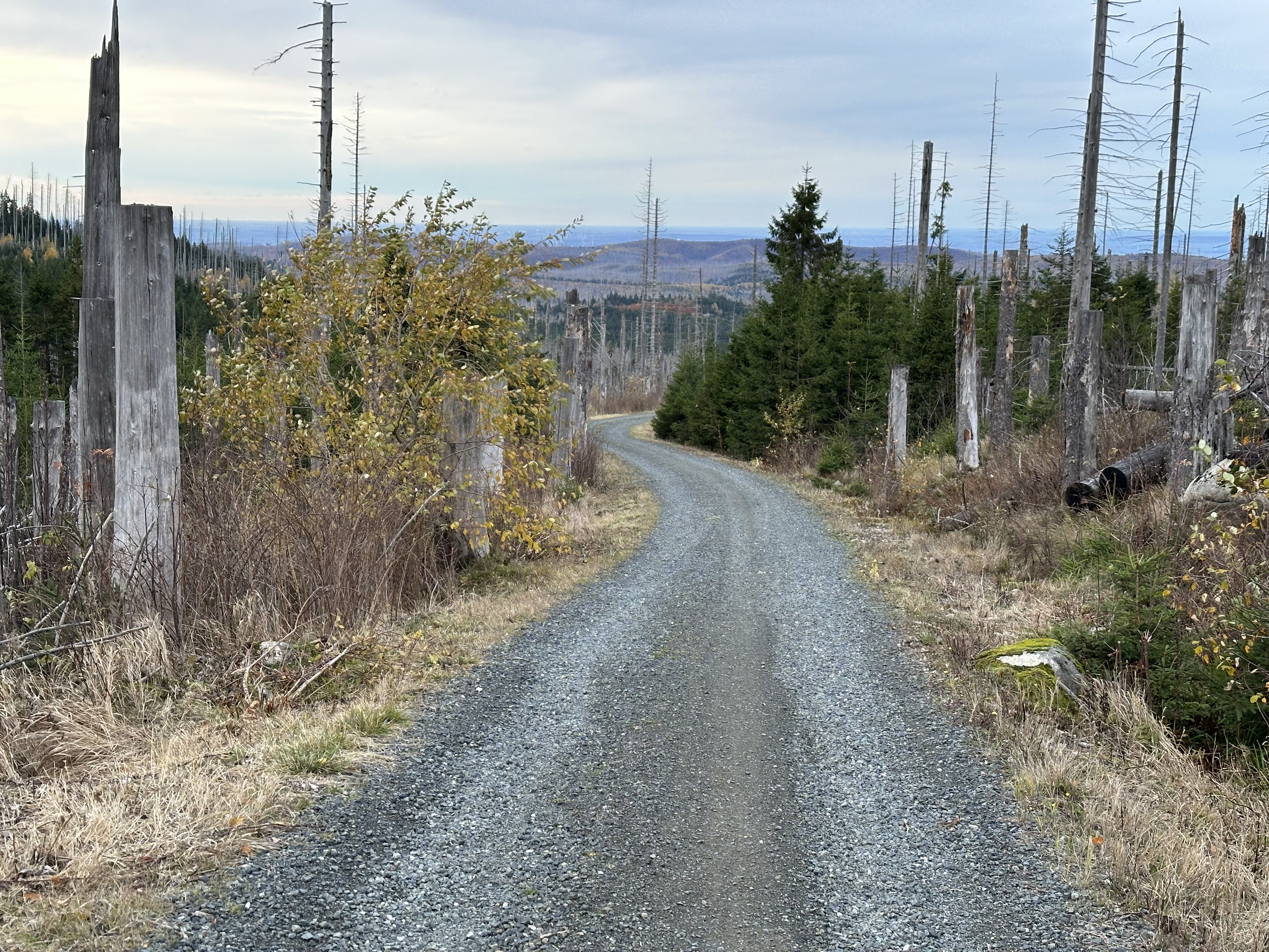 Der Waldweg Ilsenburg - Harzburg war größtenteils mit viel Laub bedeckt, was zwar sehr gut aussah, aber zum Fahrradfahren nicht so opti ist. Weil einerseits könnte so ein Mistkäfer oder anderes Viech sich da drinnen „eingewintermuckelt“ haben und anderseits sieht man nicht wie der Weg darunter beschaffen ist.
