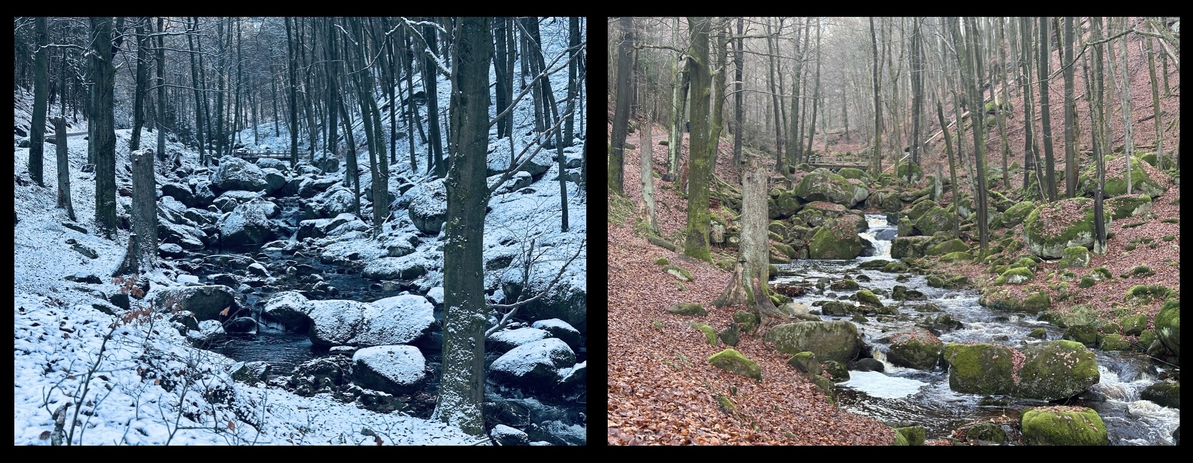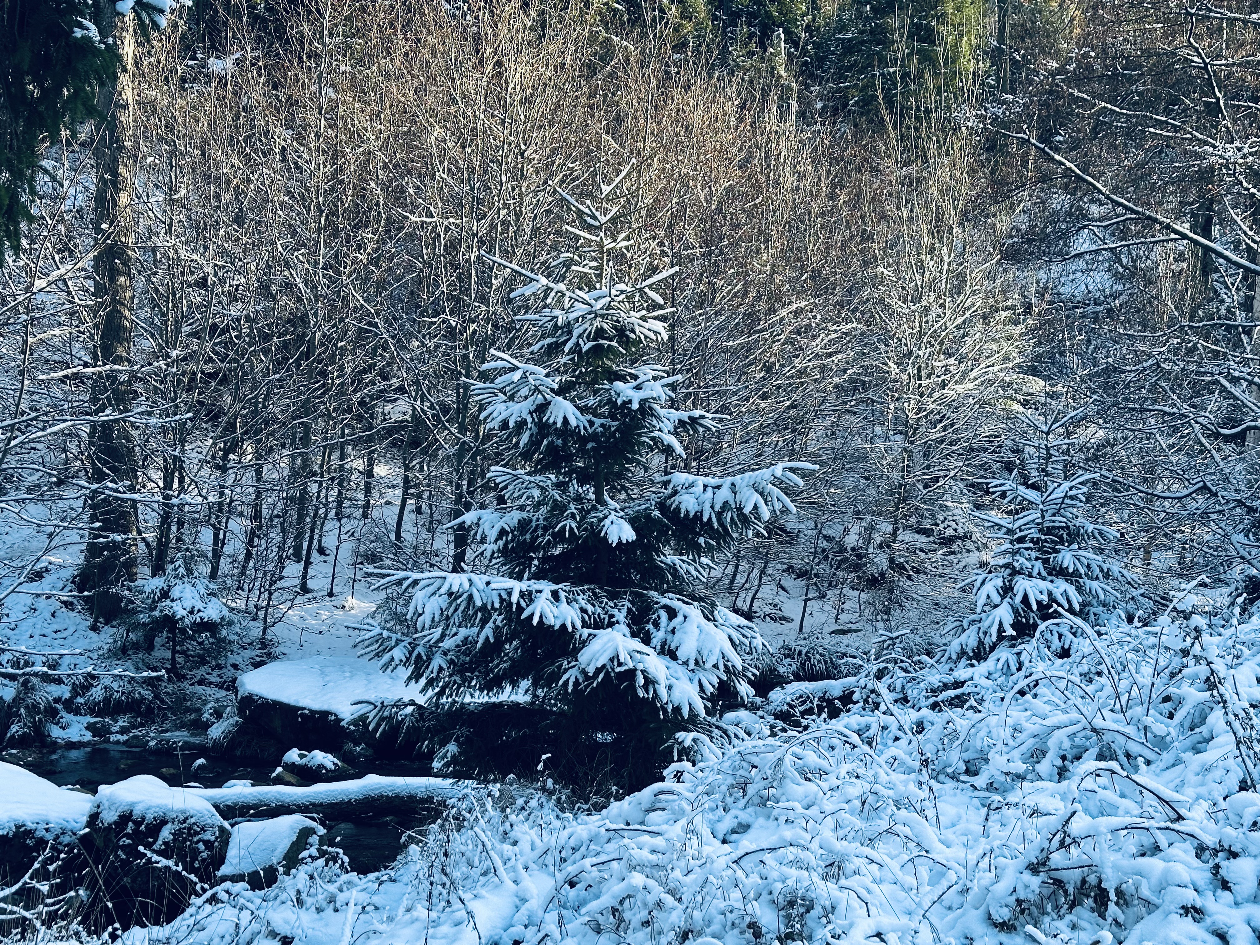 Auf dem Titelbild mit einem Tannenbaum im Schnee, fotografiert im Bereich der Ilsefälle vom vergangenem Wochenende.