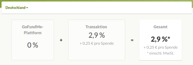 gofundme.com wirbt auf der Startseite groß mit gebührenfrei Spenden sammeln – für Menschen und Projekte bei 0 % Nutzungsgebühren. Nach etwas Suche findet man allerdings: