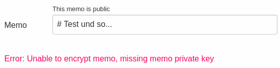 Zum Ver- und Entschlüsseln einer Nachricht per Memo ist der Private Memo Key zuständig, nicht der öffentliche Schlüssel.