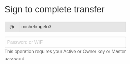 Wenn alles passt, auf Schaltfläche Transfer unten rechts klicken. Es erscheint das Fenster zur Eingabe des Private Memo Key's.