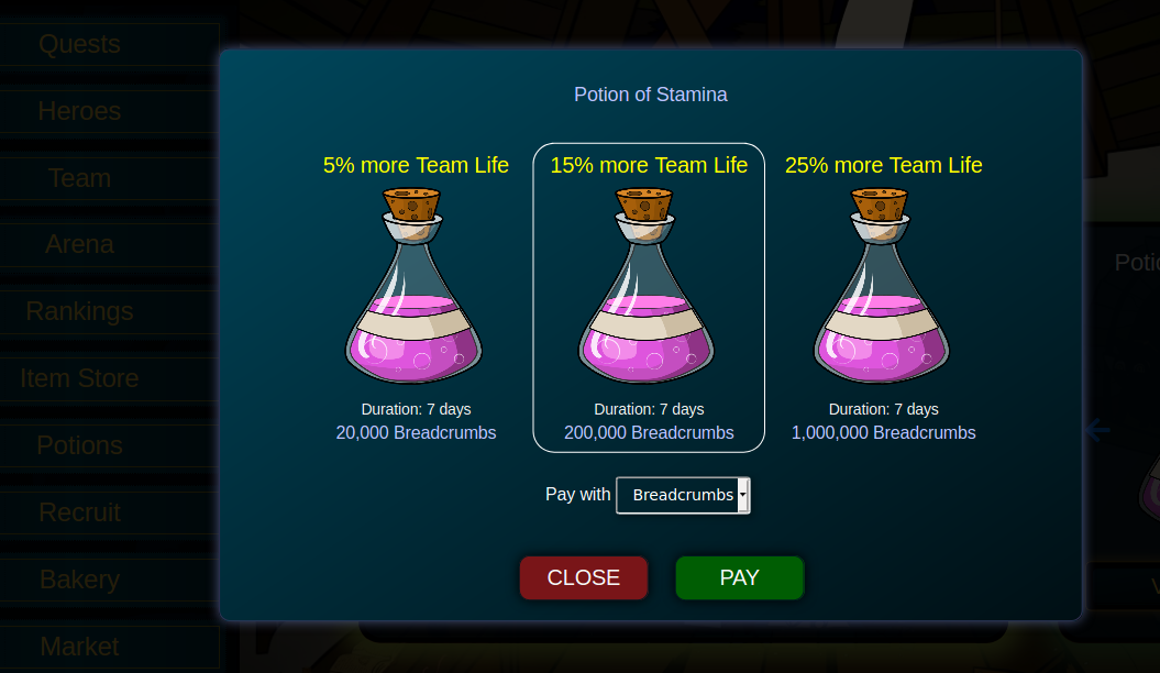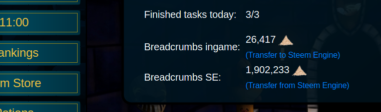 So about the new features. We now have the possibility to buy magic potions for breadcrumbs or bread. Which I did in a moment. Now we have a magic potion with different strengths and costs at the beginning.